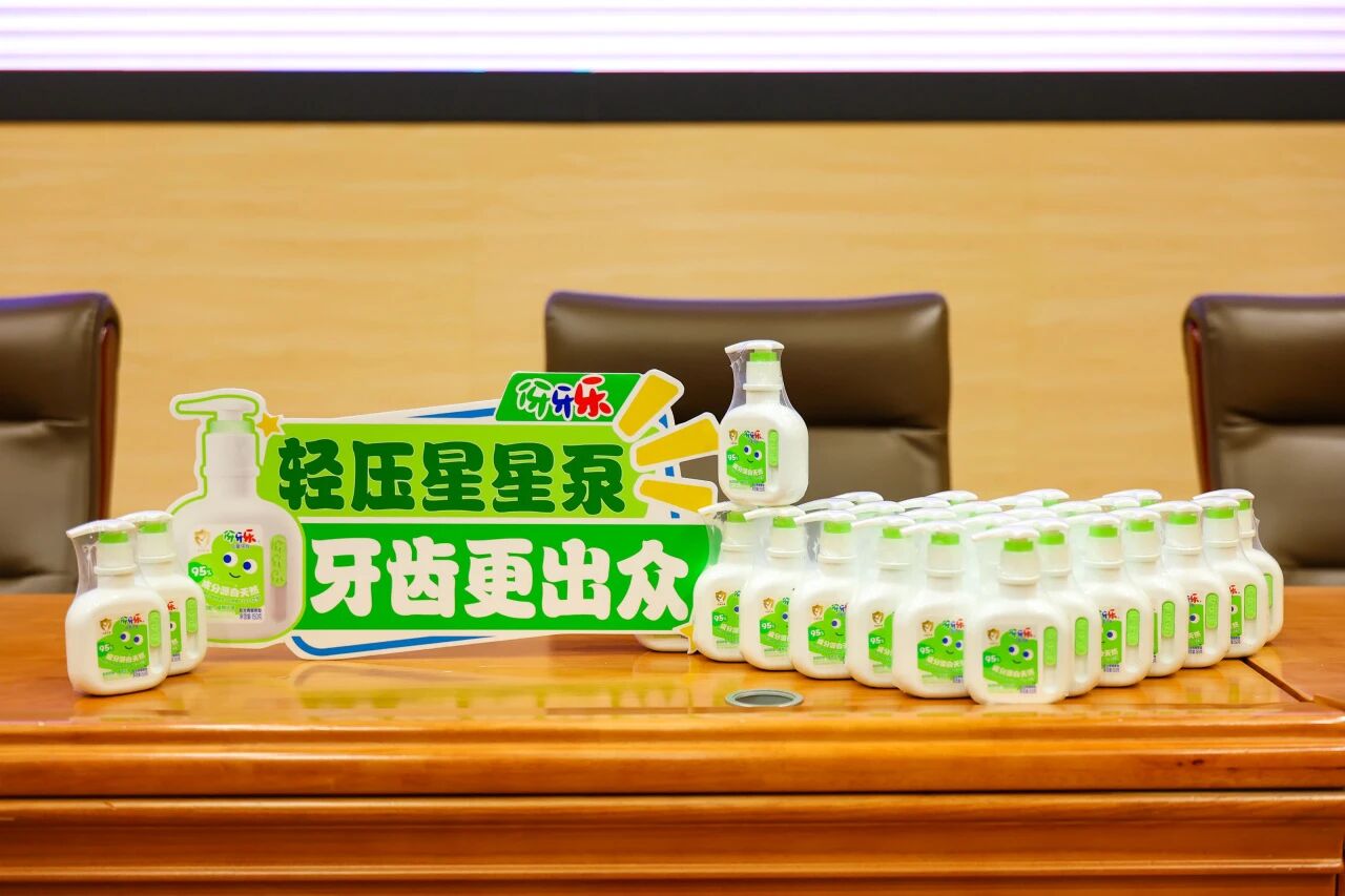 除了精彩的命题讲解,本次巡讲中,伢牙乐的全新产品——阳光青提儿童泵装牙膏也成为现场焦点。其星星造型压泵设计、可滑动logo块等创新细节,吸引众多学生驻足体验。不少同学体验后表示,产品不仅在视觉上充满童趣,在使用上也兼具便捷与趣味,打破了他们对儿童牙膏的传统认知。