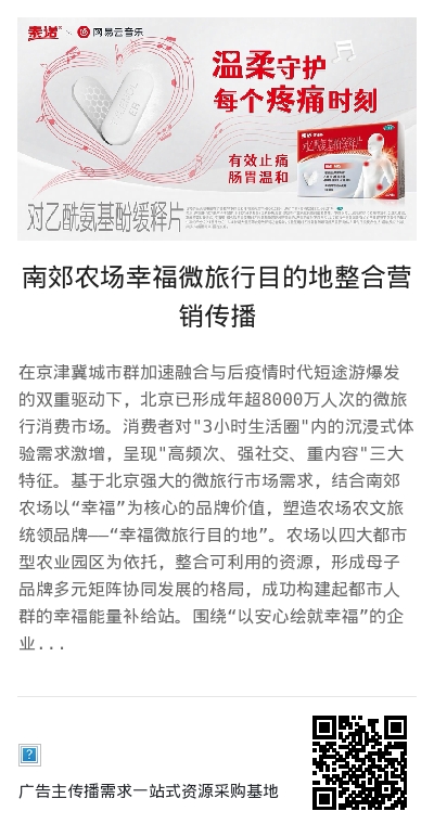 “幸福微旅行目的地”媒体策略及执行聚焦情感共鸣与精准触达:线上以新媒体平台为主阵地,联合文旅类KOL打造#幸福微旅行目的地#话题,打造热点内容引爆传播;线下联动社区电梯广告投放“活动海报”,同步主流媒体合作推出深度报道,挖掘农场“农文旅融合”创新模式。形成“社交裂变+场景渗透+权威背书”的立体传播矩阵。