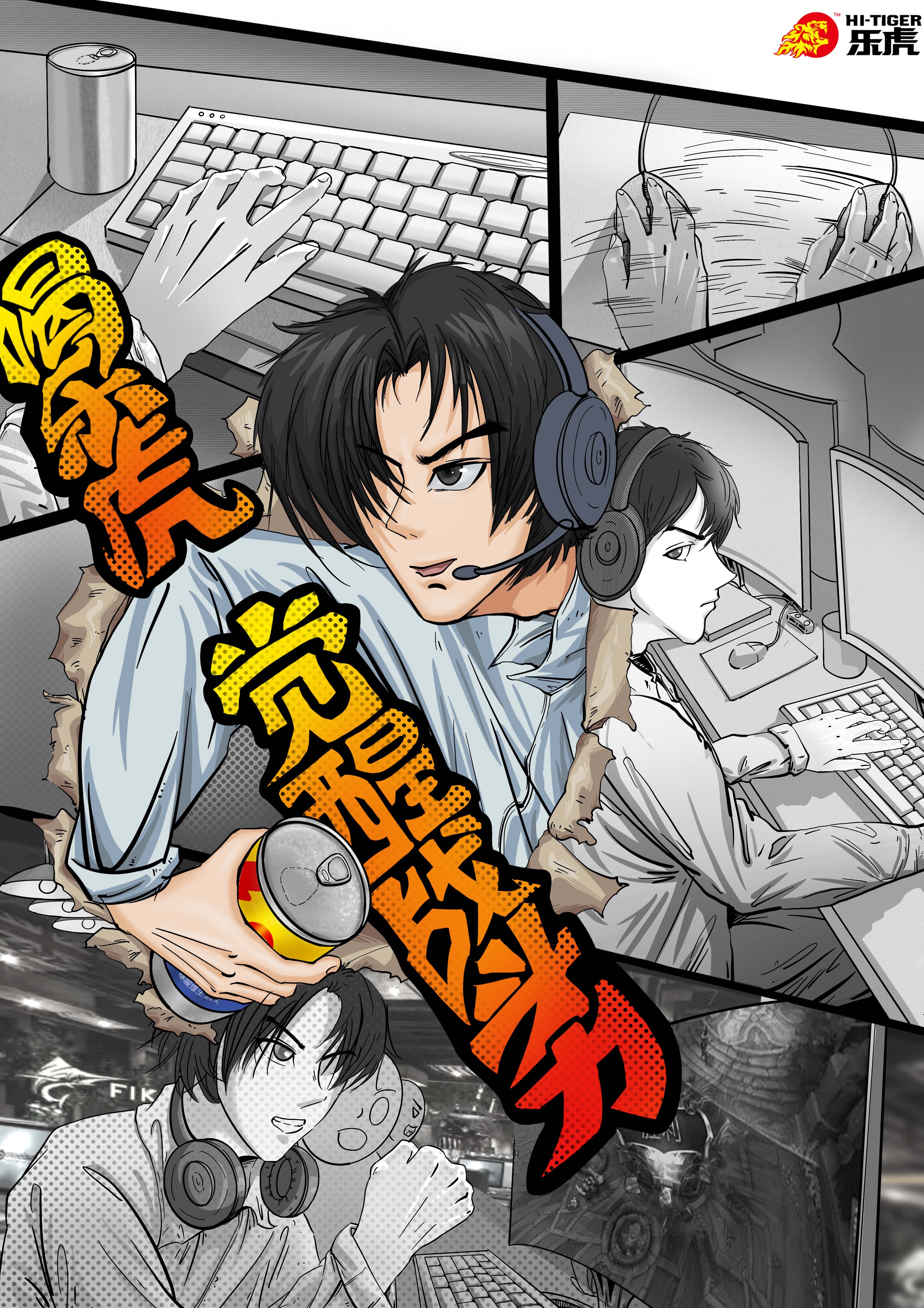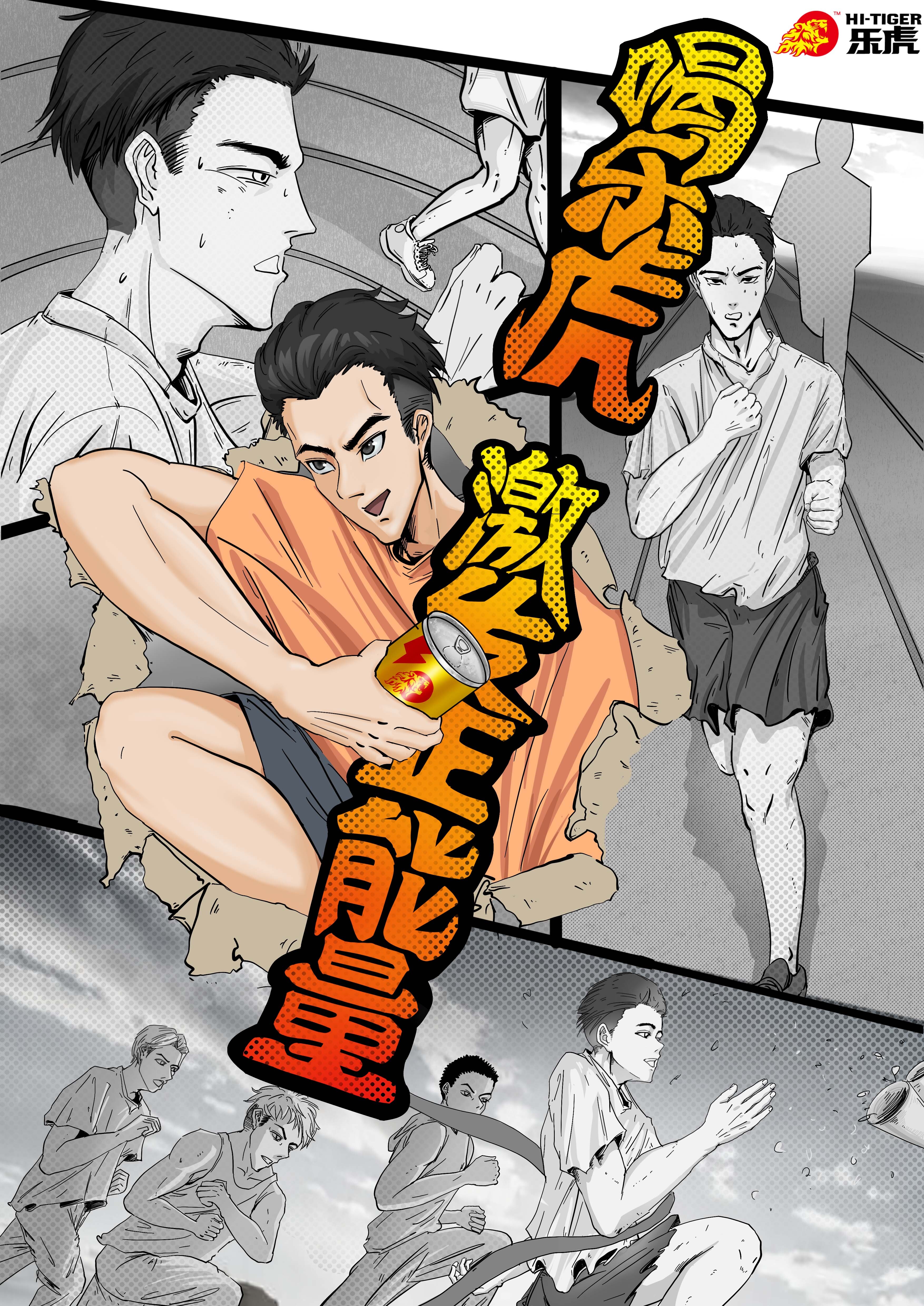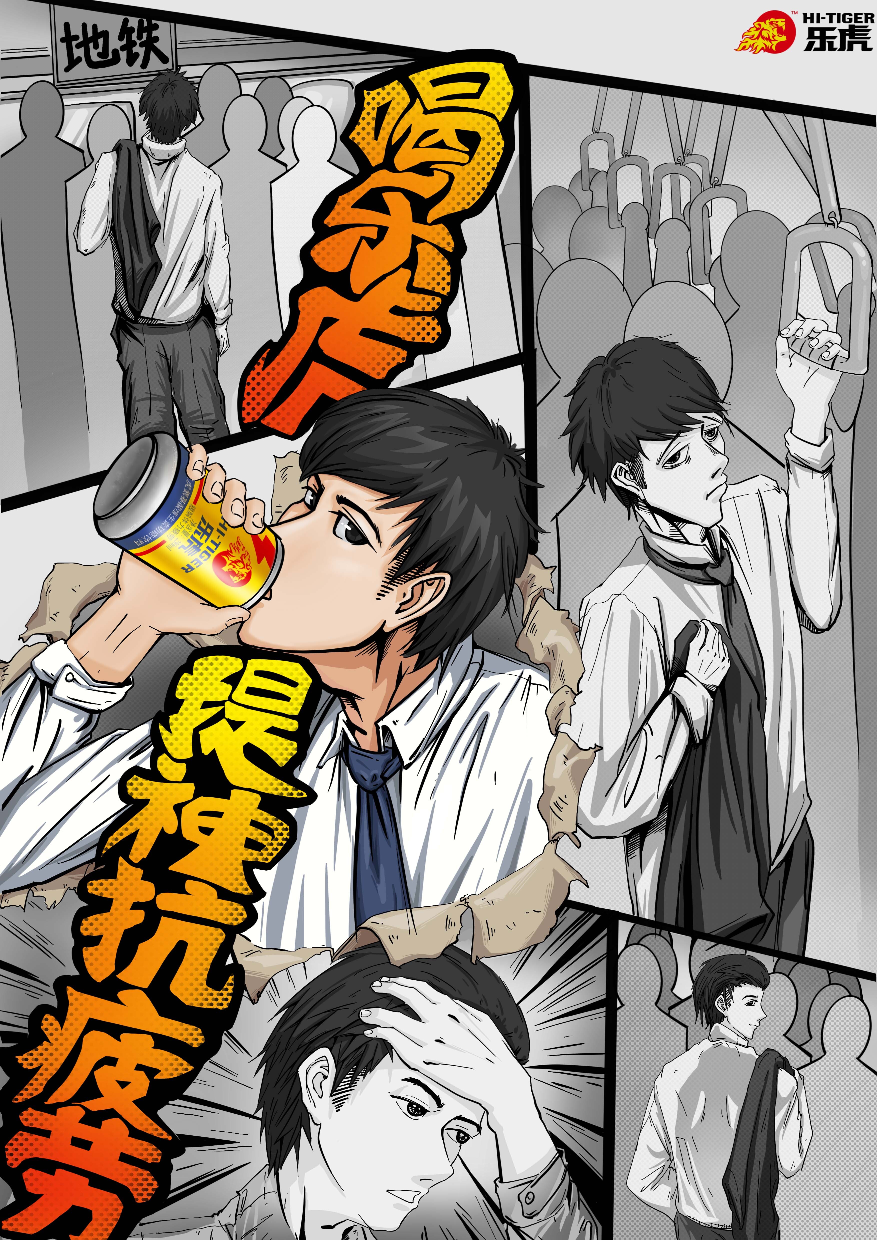 漫画中的人物面对生活中的各种挑战、苦难时,喝一口乐虎,突破异次元打破残局赢得胜利。