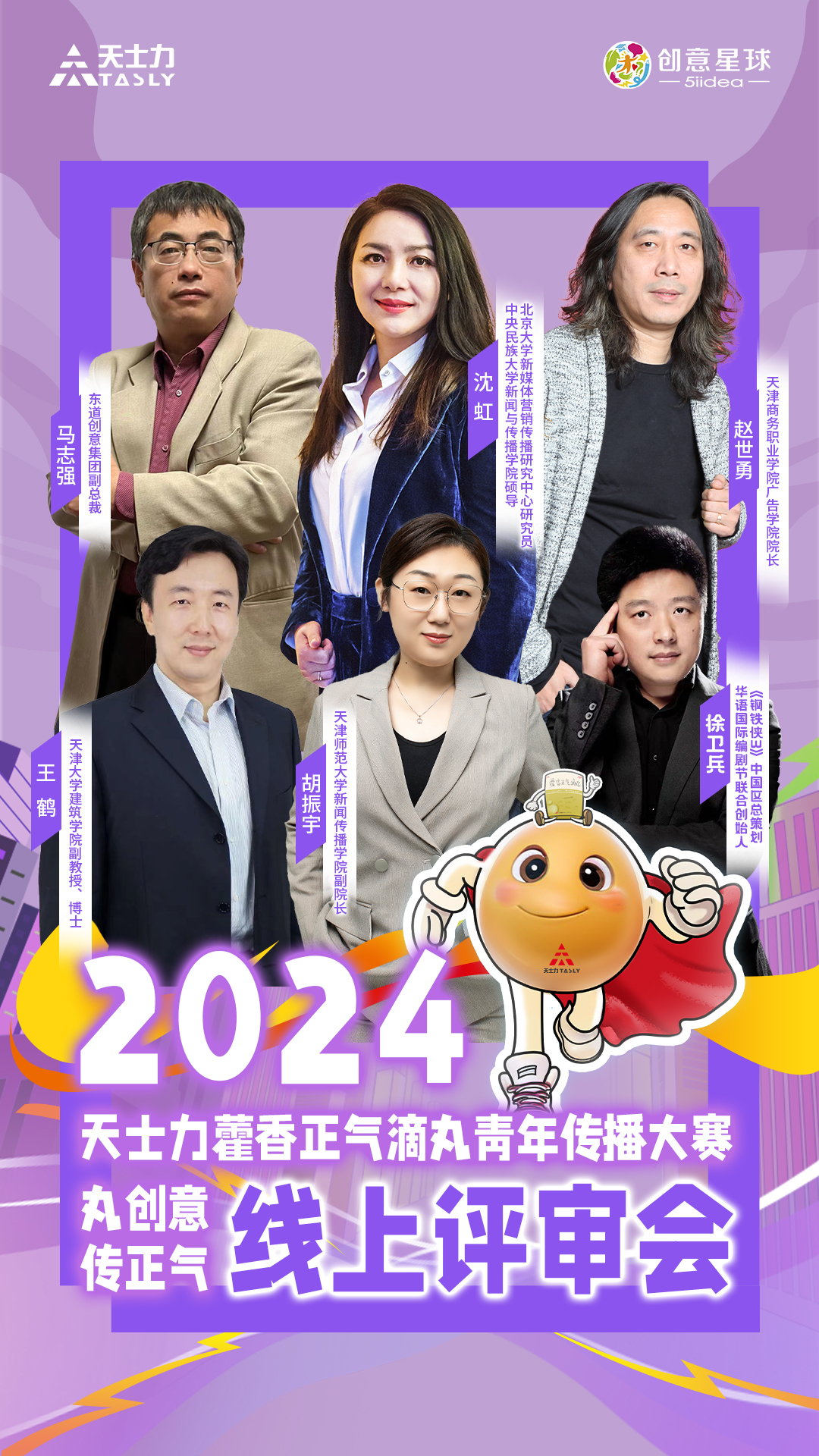 8月15日-30日,天士力藿香正气滴丸青年传播大赛复评、终评会正式开启。来自业界、学界、命题企业的创意大咖在线集结,其中企业评委为:天士力医药集团副总经理王贞女士,天士力医药集团OTC与终端事业部总经理李江山先生,天士力集团品牌战略发展中心总经理李思睿先生,天士力医药集团OTC市场部市场总监陈雅红女士,天士力医药集团品牌中心品牌整合传播负责人刘珊女士,天士力医药集团品牌中心内容与创意设计负责人武巍女士,天士力医药集团OTC市场部产品经理周志娟女士;学界评委为:北京大学新媒体营销传播研究中心研究员、中央民族大学新闻与传播学院硕导沈虹女士,天津商务职业学院广告学院院长赵世勇先生,天津师范大学新闻传播学院副院长胡振宇女士,天津大学建筑学院副教授、博士王鹤先生;业界评委为:东道创意集团副总裁马志强先生,《钢铁侠3》中国区总策划、华语国际编剧节联合创始人徐卫兵先生,共同批阅青年学子的创意答案。