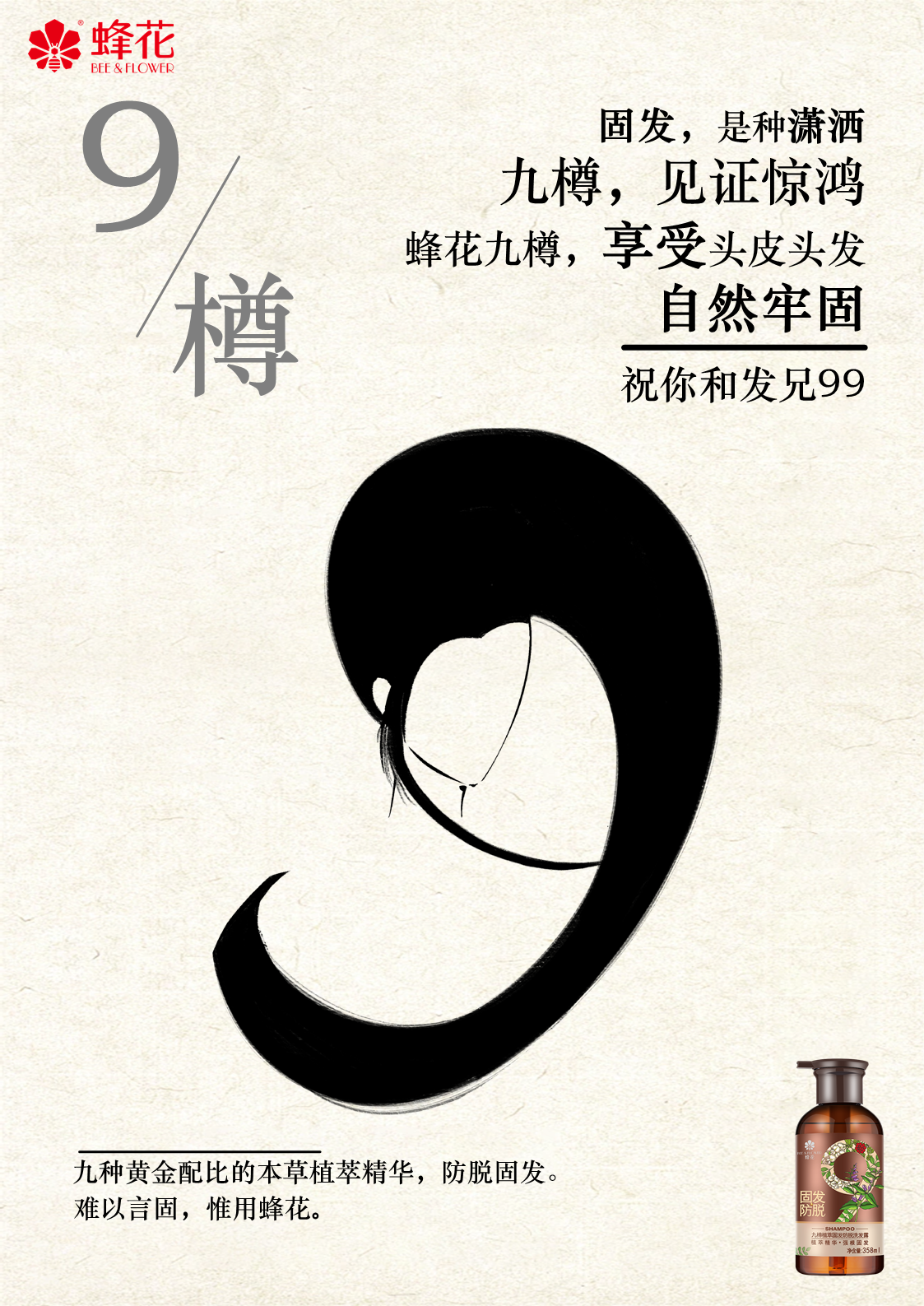 蜂谐音“封”,蜂花九樽植萃固发防脱洗发露的功效是防脱固发,就像把发丝封印在头上不让脱落一样。