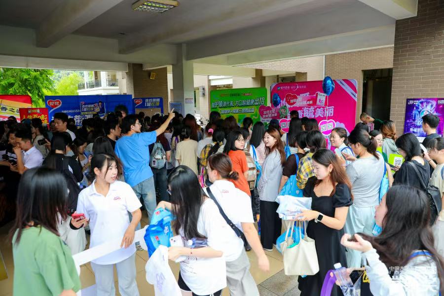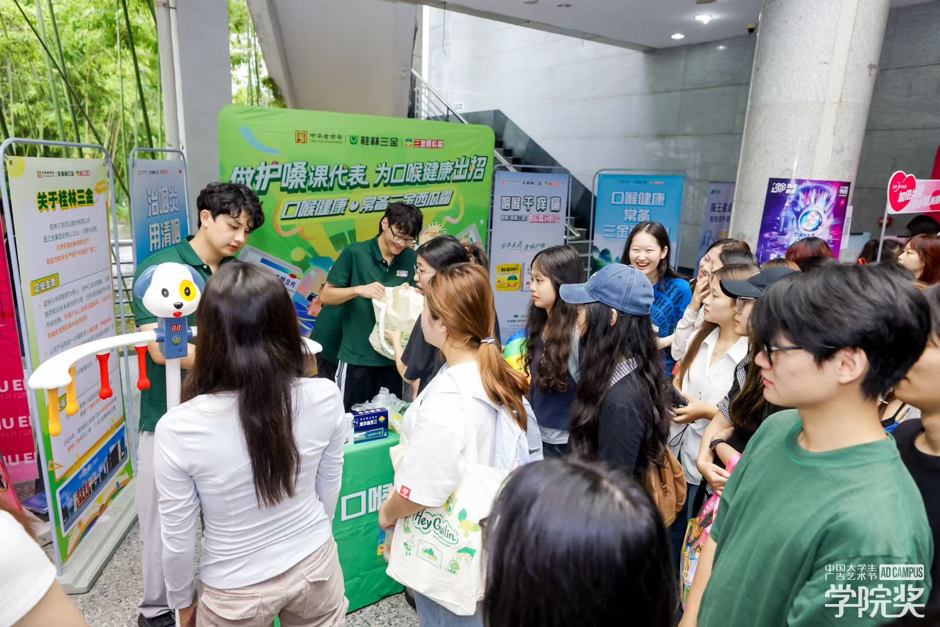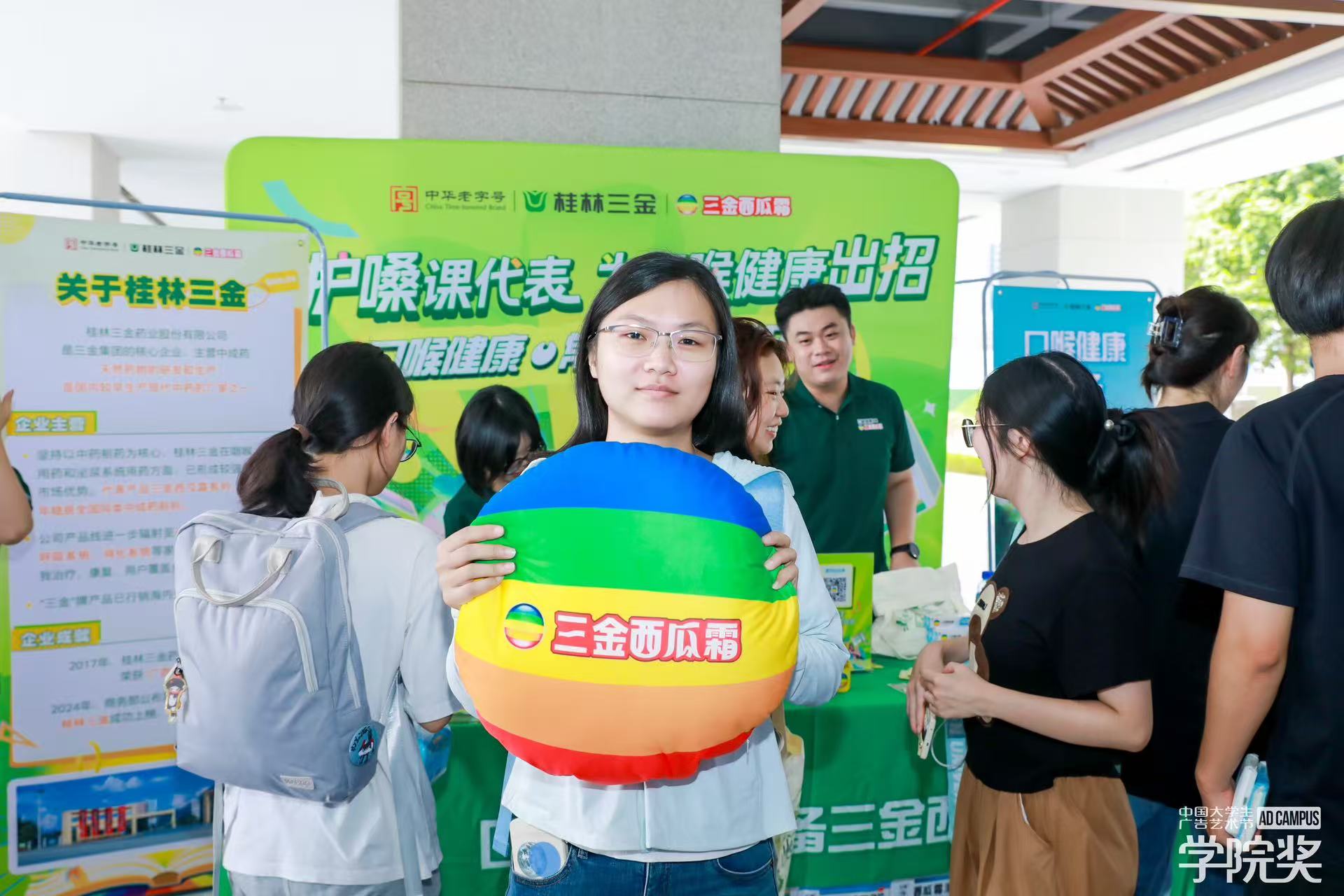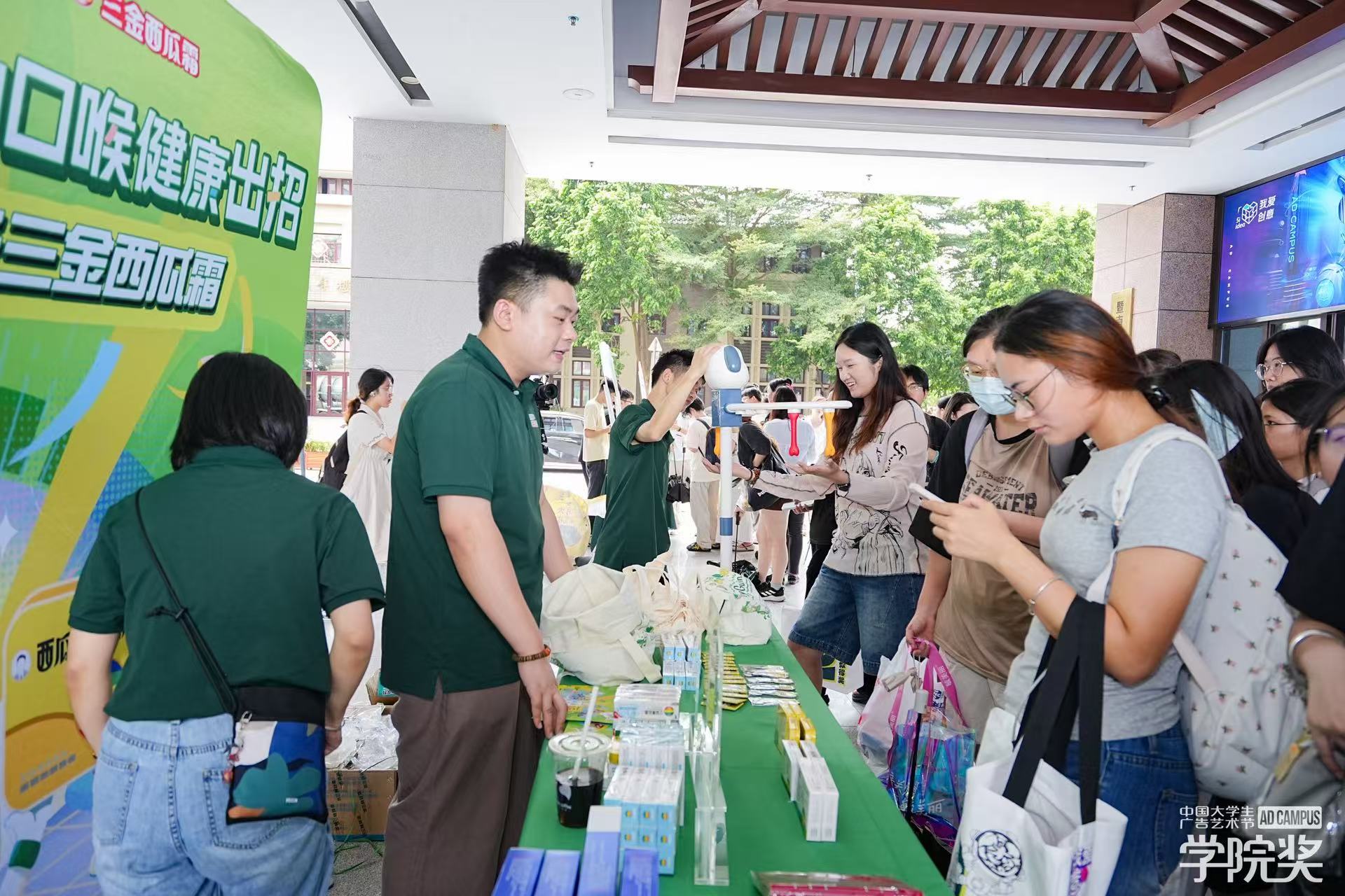 不同会场,同样有趣!为打造与学子们更沉浸式的互动体验,三金西瓜霜在三所高校均设置了品牌专属的互动展区。这里不仅陈列着产品实物供学子们零距离了解,更设有趣味互动装置和创意拍照打卡点,吸引了众多同学驻足参与,欢声笑语不断。
