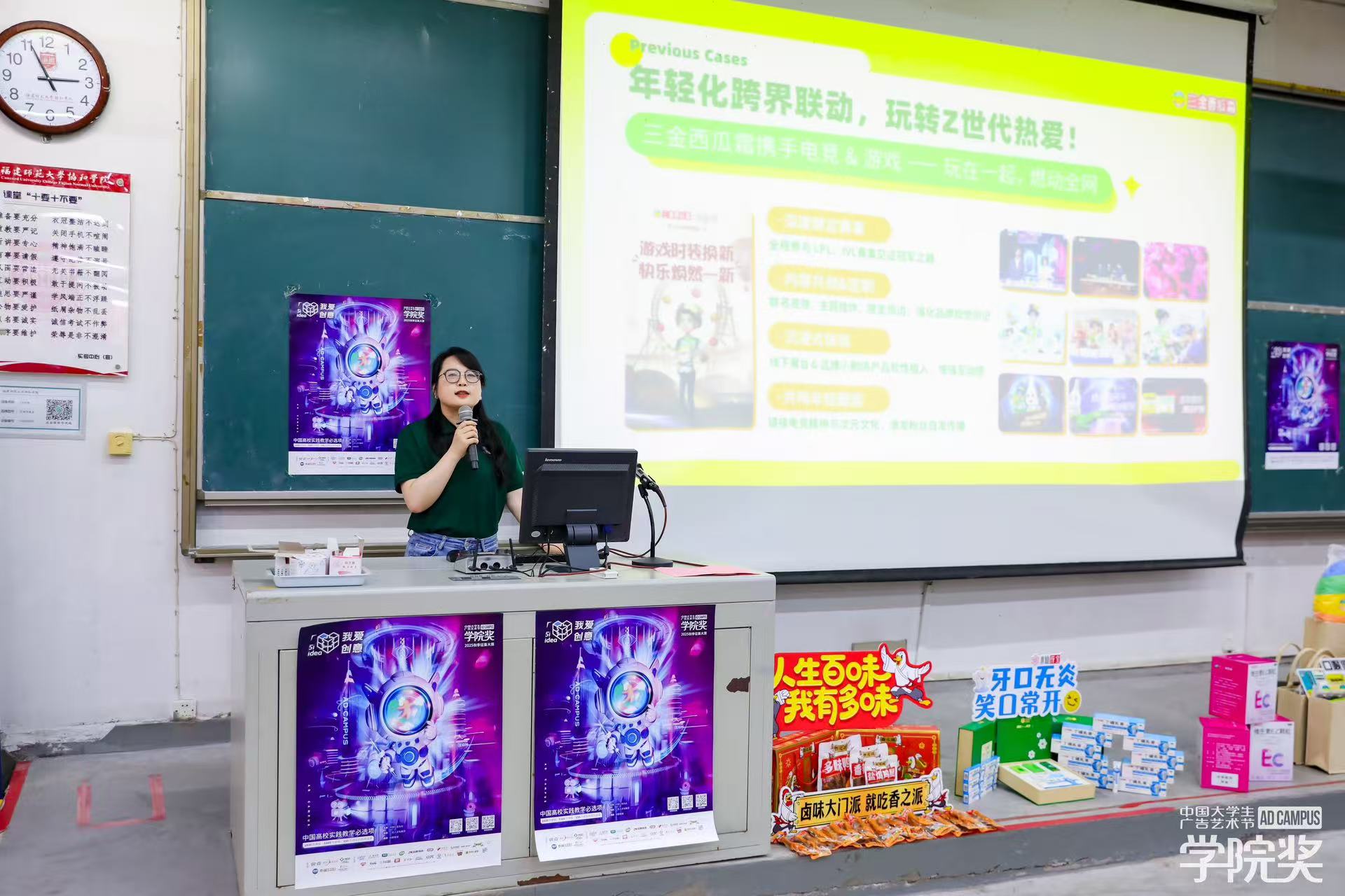 不同会场,同样精彩!此次宣讲活动,三金西瓜霜以“做护嗓课代表”为核心,向青年学子传递“口喉健康,常备三金西瓜霜”的健康理念。品牌代表们深入剖析了本次命题的创作类别和核心要点,将传统中医药理念与现代健康需求相结合,向学子们展示了西瓜霜系列产品在口喉健康领域的专业价值和独特优势。此外,还有三金西瓜霜还为参赛作品设立了“三金西瓜霜传播大奖”,激励学子展示才华。所有类别参赛作品除正常参评学院奖评选外,还可参与企业特别奖项的评选!鼓励学子们发挥创意,踊跃为口喉健康出招。