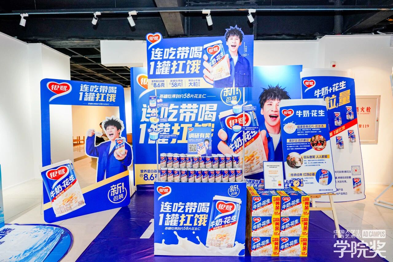 创意课堂之外,银鹭牛奶花生的品牌展区早已成为校园里的“人气打卡地”。蓝白相间的展区设计呼应全新视觉体系,以亮眼清爽的视觉传达吸引大批学子驻足。
