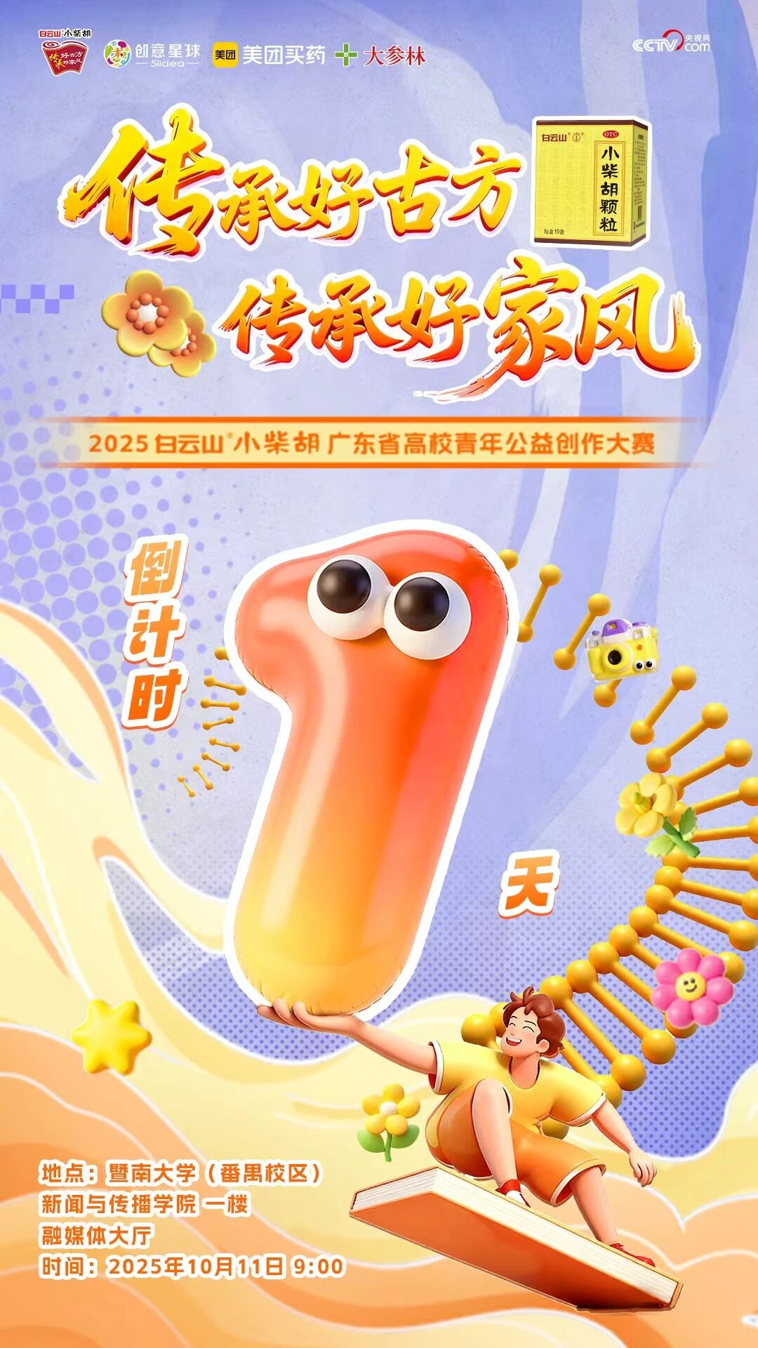 白云山小柴胡“传承好古方,传承好家风”广东省高校公益创作大赛启动仪式倒计时1天!