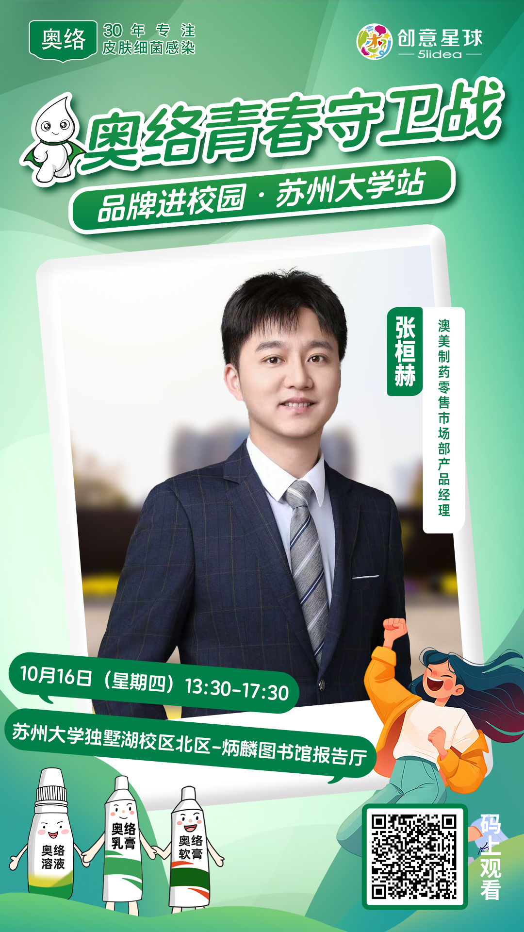 宣讲现场,澳美制药的品牌代表们不仅带来了奥络的品牌故事,让更多年轻人了解澳美制药,加深品牌认知;更从专业角度出发,深入浅出地分享了青春期常见的皮肤问题及其通过奥络来进行科学应对的方法。他们巧妙地将“奥络青春守卫战”的创意主题与当代大学生的生活状态相结合,阐释了“专业守护”之于“青春绽放”的重要意义,传递品牌“专业、值得信赖、乐观阳光”的品牌调性。