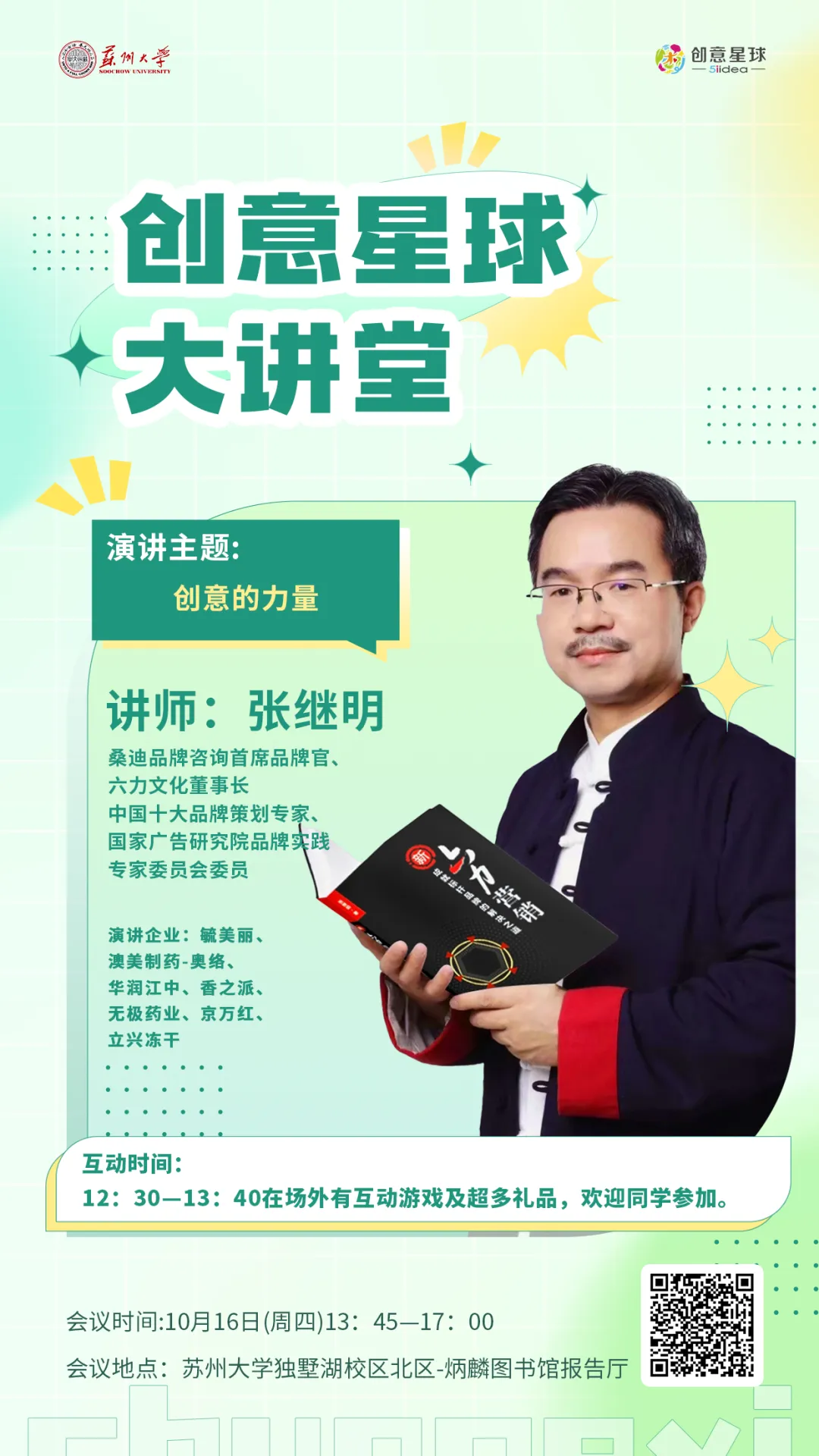 巡讲预告 | 10月17日,创意星球大讲堂苏州大学站开讲!