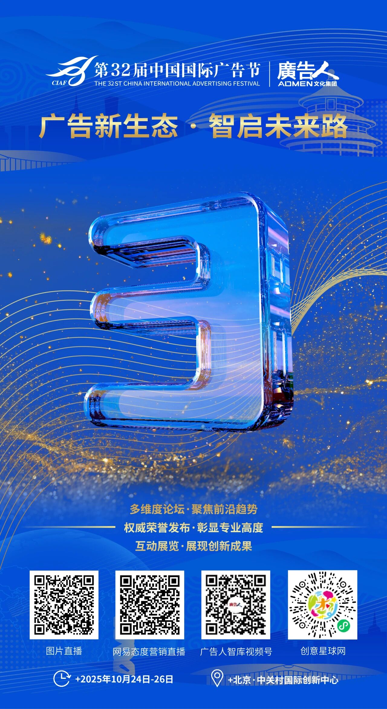 当AI技术持续重塑传媒格局,一场聚焦行业前沿趋势的思想盛宴即将在广告节上开启。10月25日09:00-12:00,第32届中国国际广告节·2025传媒趋势论坛,将高举「重构链接·智传破局」旗帜,在中关村国际创新中心盛大召开。