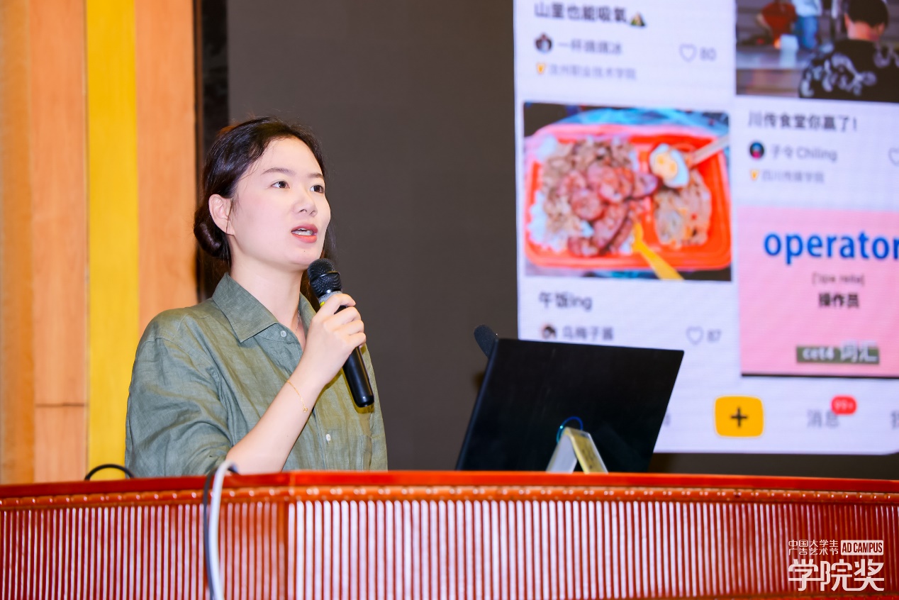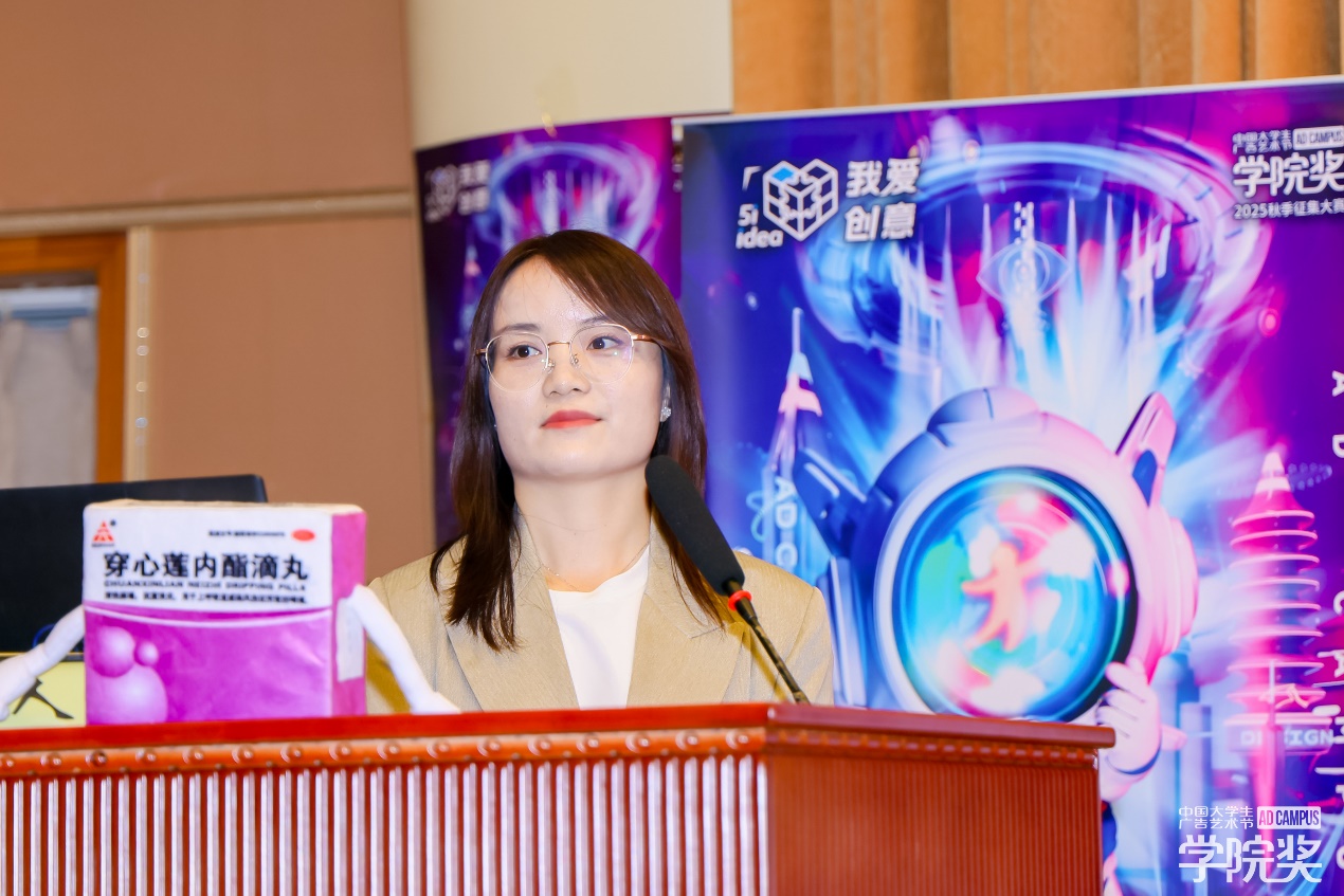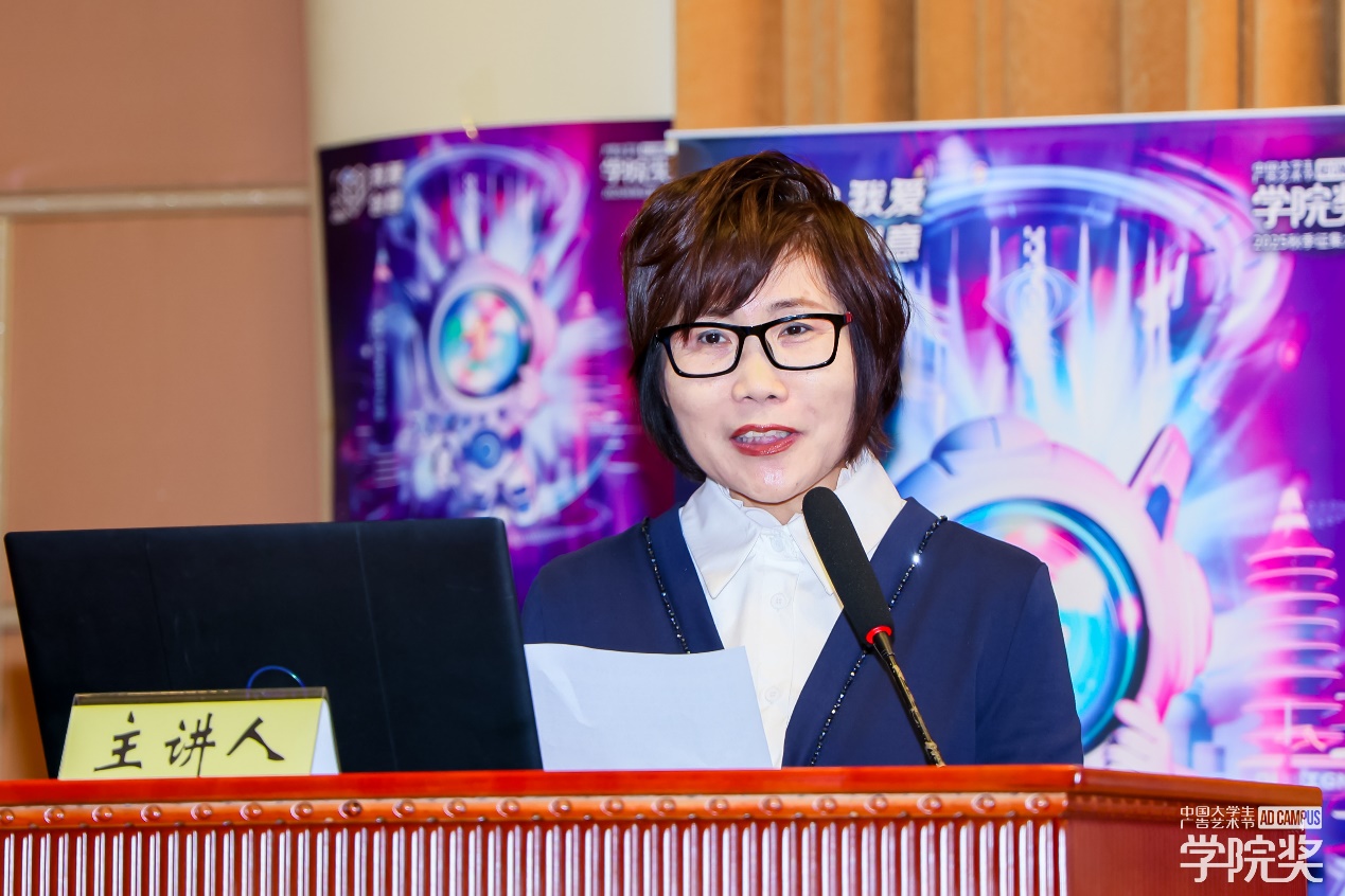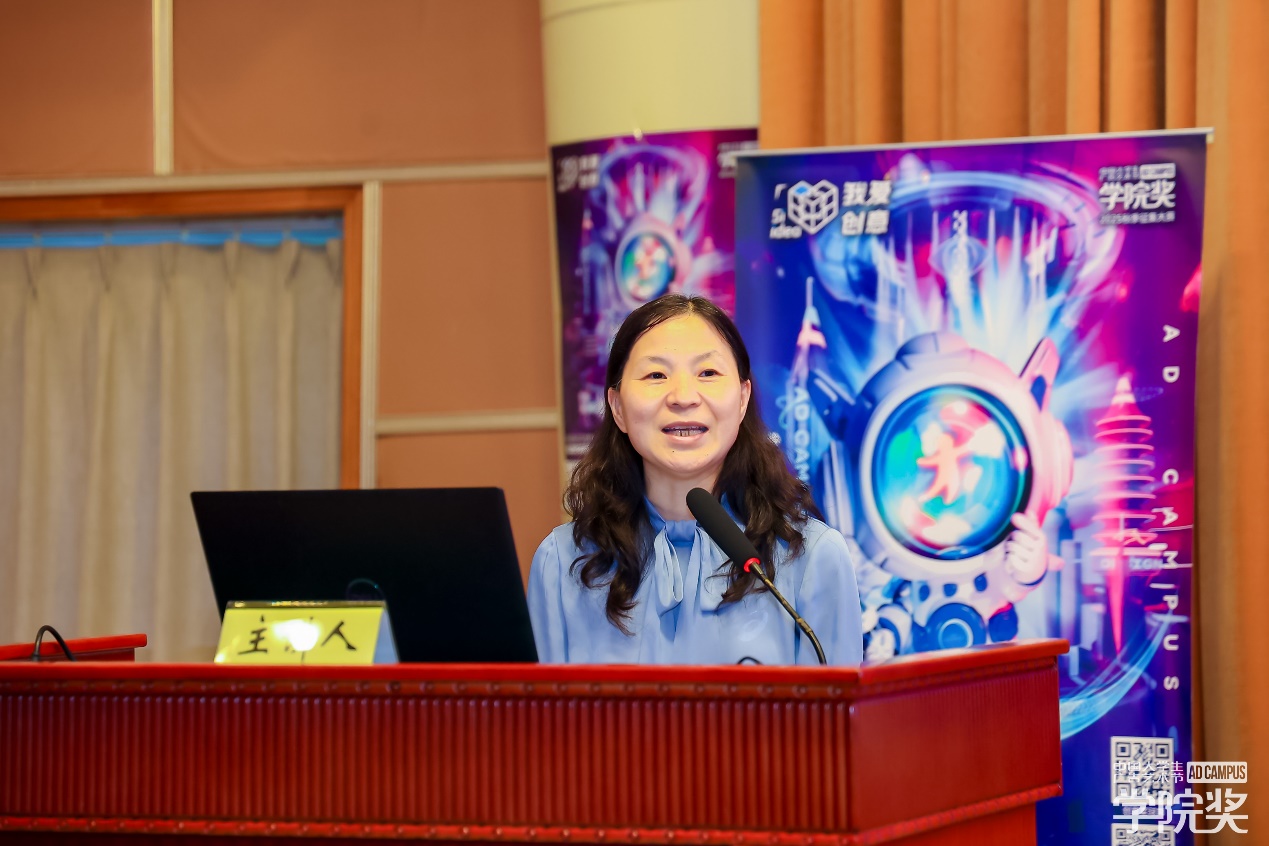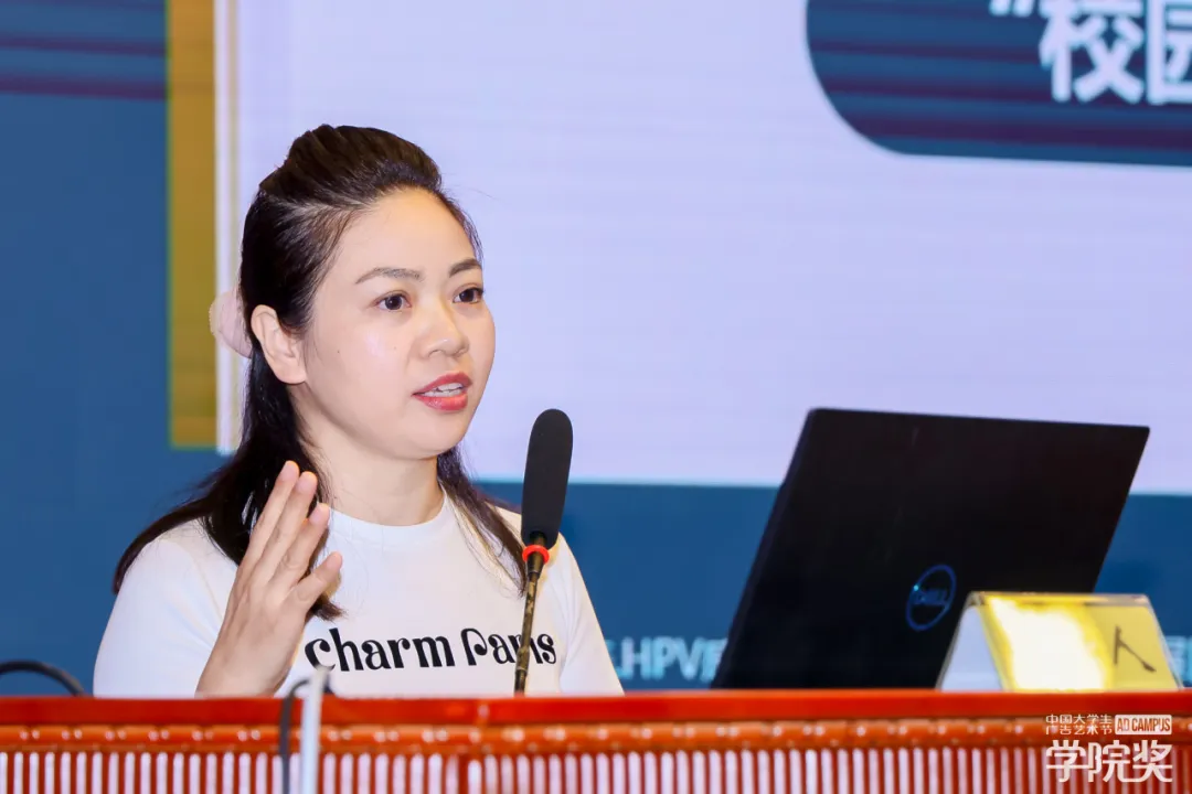 广告人文化集团副总裁,大学生广告艺术节学院奖秘书长袁健女士代表学院奖组委会发表致辞,她向长期支持学院奖的重庆交通大学旅游与传媒学院的师生致以敬意,同时感谢肖金生会长、命题企业代表及重庆兄弟院校师生到场,袁健女士高度赞扬了该校在学院奖中斩获的优异成绩,肯定师生们的专业力与参与力,并在最后热烈期盼未来能继续与院校携手培育创意新星,愿创意之火长明、教育之树长青。
