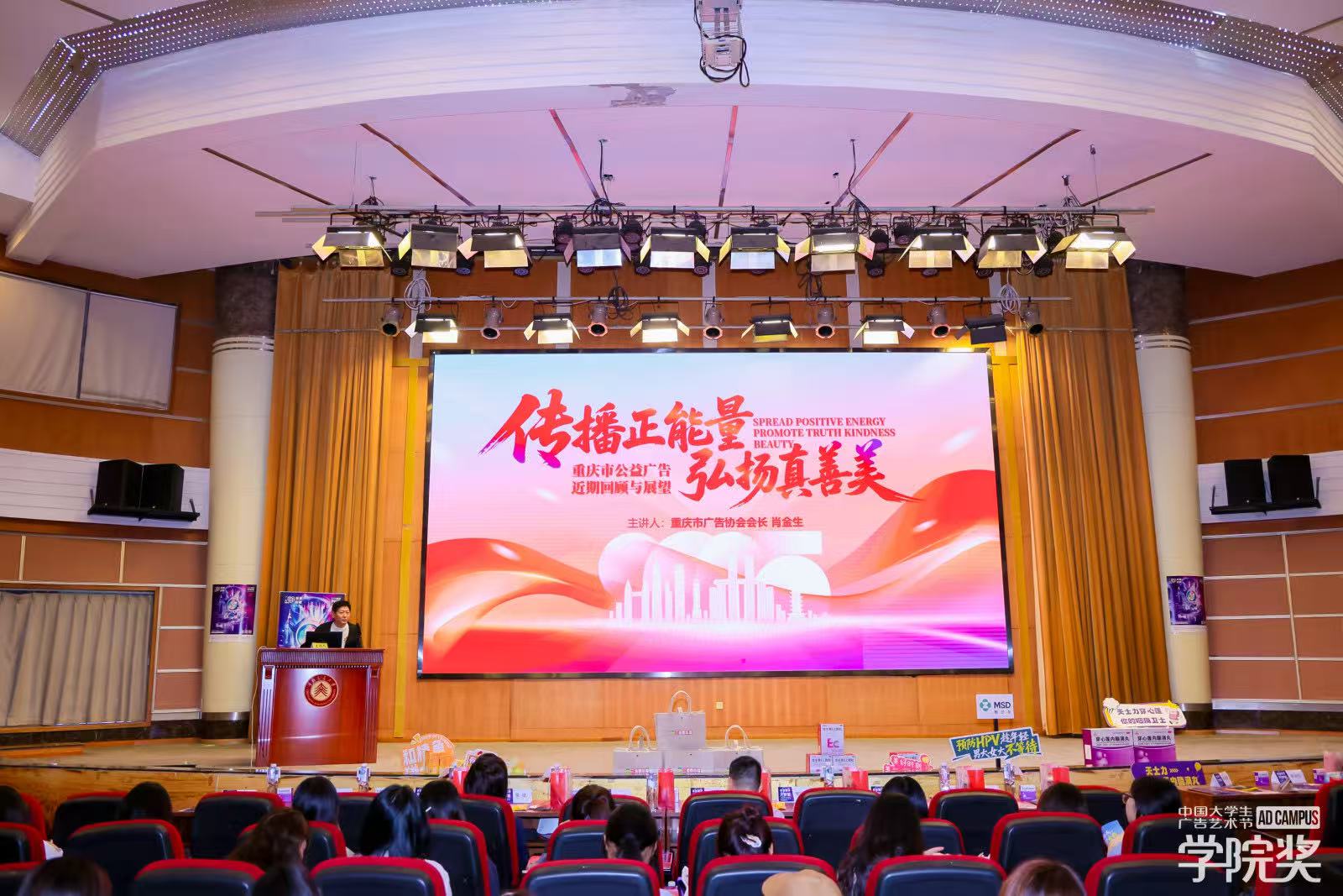 本次活动特邀到重庆市广告协会党支部书记、会长肖金生先生,以 “传播正能量 弘扬真善美” 为主题,为同学们带来了一场关于重庆公益广告发展成果与规划的专题分享。