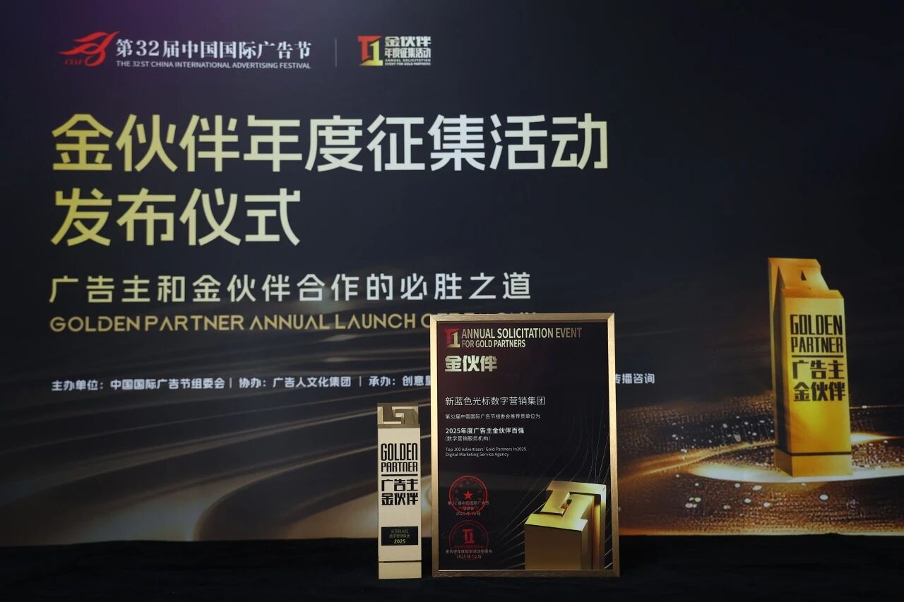 经过专业评审团从策略能力、IP资源、资源整合、案例成果、社会责任五大维度对行业优秀经营机构的严苛评估,蓝色光标旗下核心业务品牌之一新蓝色光标数字营销集团(以下简称“新蓝标数字集团”),凭借在AI驱动赋能的整合营销及新媒体BKFS营销领域的卓越表现,荣获“2025年度广告主金伙伴百强”(数字营销服务机构)称号。
