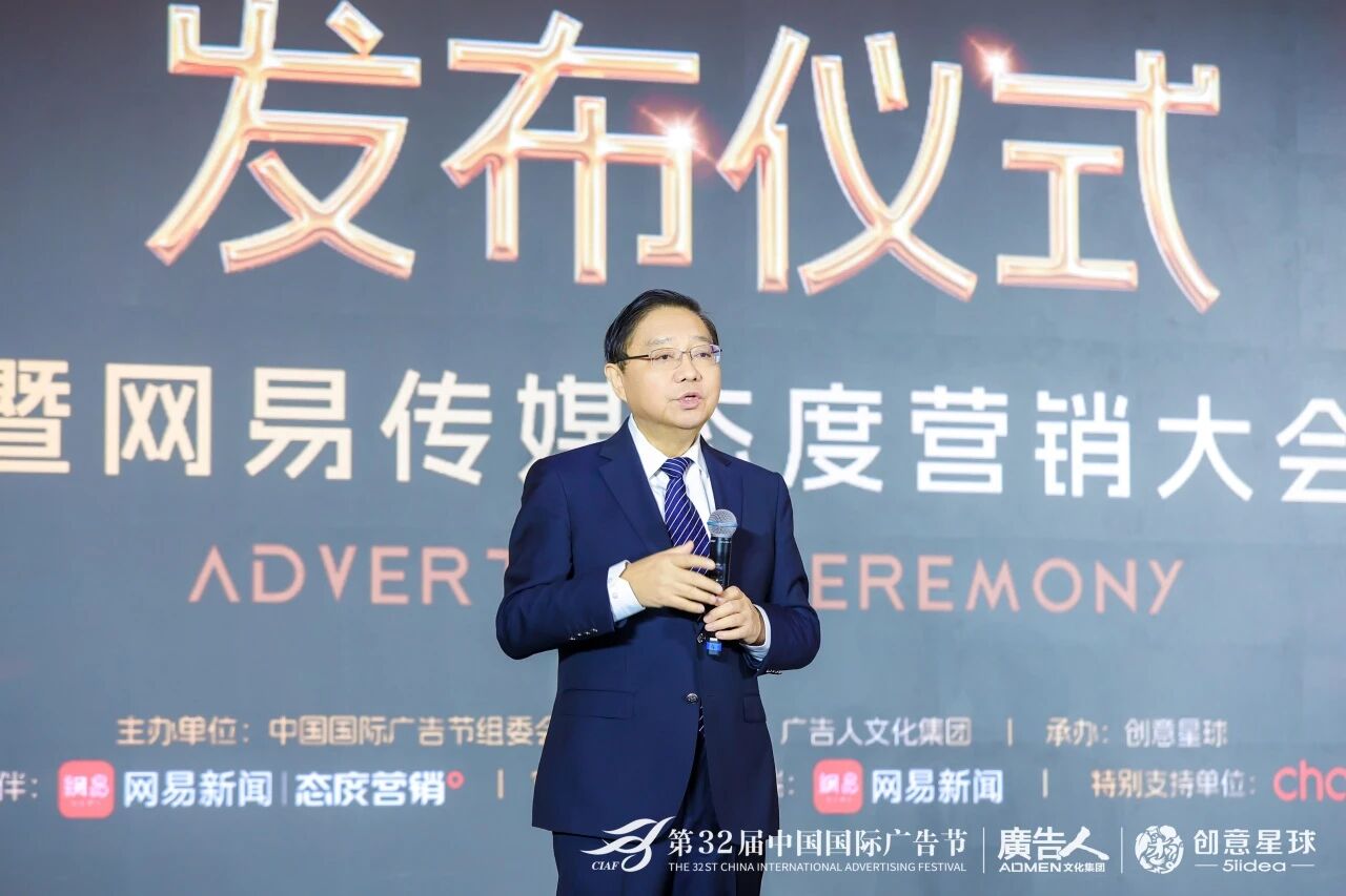 发布仪式开场,中国广告协会会长张国华、广告人文化集团总裁穆虹、网易传媒副总裁李淼等领导嘉宾先后登台致辞。