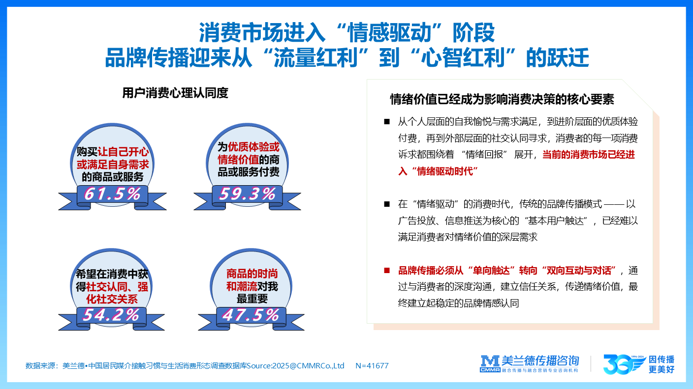 消费市场进入“情感驱动”阶段,品牌传播迎来从“流量红利”到“心智红利”的跃迁。“AI时代,信任、共情、陪伴构建差异化心智价值的能力将被深度唤起。”