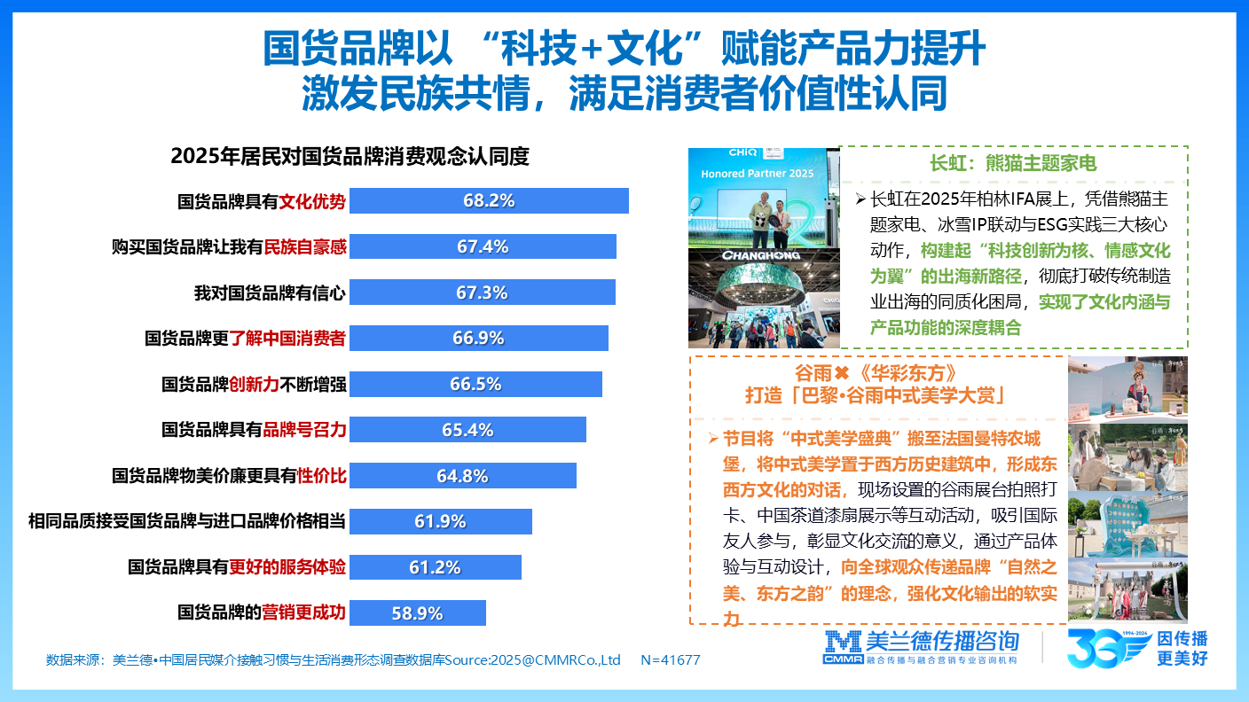 在实践层面,国货品牌以“科技与文化”为抓手赋能产品力,更能精准激发民族共情,实现情绪价值从个体到群体的升维传递:长虹在2025年柏林IFA展上,通过熊猫主题家电、冰雪IP联动与ESG实践的“科技与文化”组合拳,打破传统制造业出海的同质化困局,让文化内涵与产品功能深度耦合,唤起消费者对民族品牌科技创新与文化表达的双重认同。