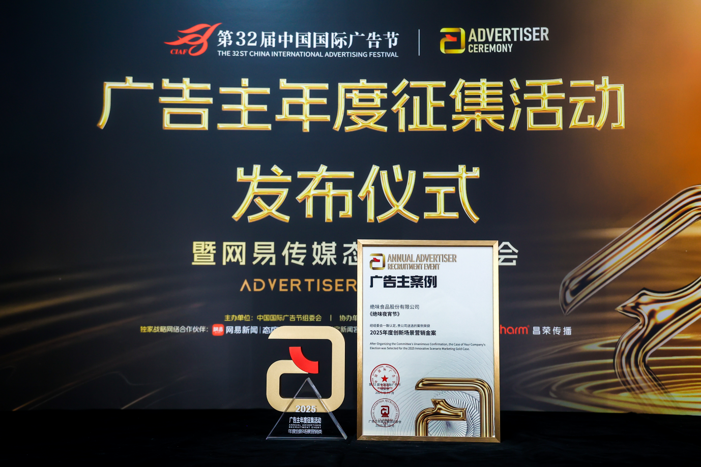 10月25日,北京——备受瞩目的第32届中国国际广告节广告主盛典在北京中关村国际创新中心隆重举行。中国卤味行业领军品牌绝味食品成为全场焦点,绝味品牌团队提报的《绝味夜宵节》案例,在众多参评作品中脱颖而出,荣膺“中国国际广告节2025广告主年度征集活动·年度创新场景营销金案”。