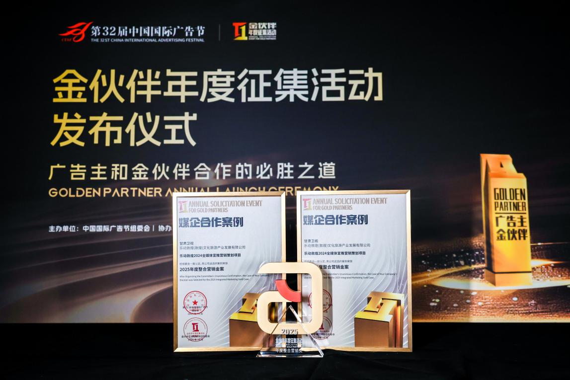 媒企合作案例不仅代表了行业的最佳实践,更是未来发展的风向标。本次发布仪式上,甘肃卫视乐动敦煌2024全媒体宣推营销策划项目,凭借清晰的策略逻辑、创新的执行思路与显著的市场实效,获颁媒企合作案例“年度整合营销金案”称号。这一荣誉是对双甘肃卫视在媒企合作中展现出的创新思维和卓越执行能力的高度肯定,更是对其在推动行业技术融合、探索营销新边界方面所做贡献的权威认证。