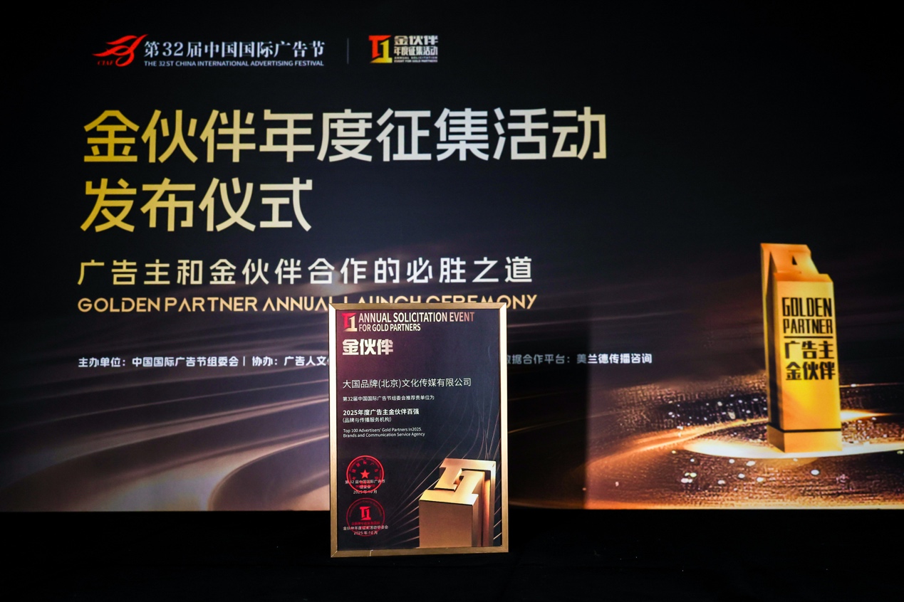 本届金伙伴评选延续“策略能力、IP资源、资源整合、案例成果、社会责任”五大核心维度,经过多轮严格评鉴,大国品牌(北京)文化传媒有限公司(以下简称“大国品牌传媒”)凭借出众的媒体资源优势多元化的营销传播战略,专业的全链路服务团队,以及在战略定位、内容传播、品牌公关、资源链接等领域的突出实践,成功荣登2025年度广告主金伙伴矩阵。