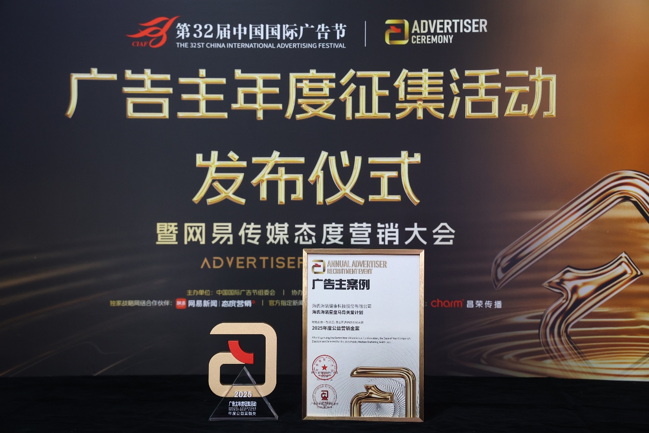 10月25日,第32届中国国际广告节·广告主年度征集活动发布仪式在北京中关村国际创新中心隆重举行,海氏海诺健康科技股份有限公司(以下简称“海氏海诺”)凭借“星童马背关爱计划”项目成功斩获“2025年度公益营销金案”称号,这一荣誉不仅彰显了海氏海诺在公益领域的持续投入与创新实践,也为行业树立了品牌与社会价值交汇共融的典范。