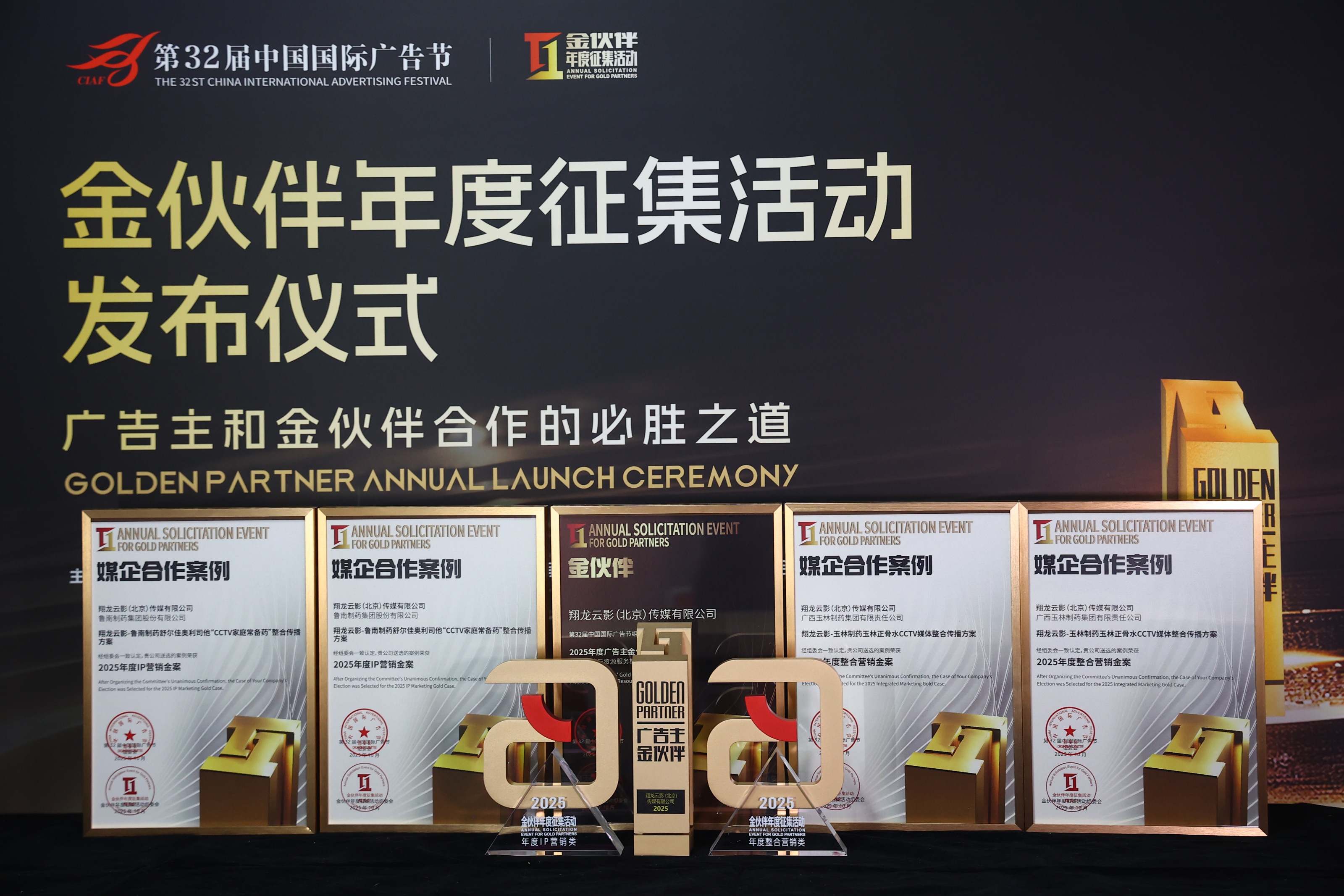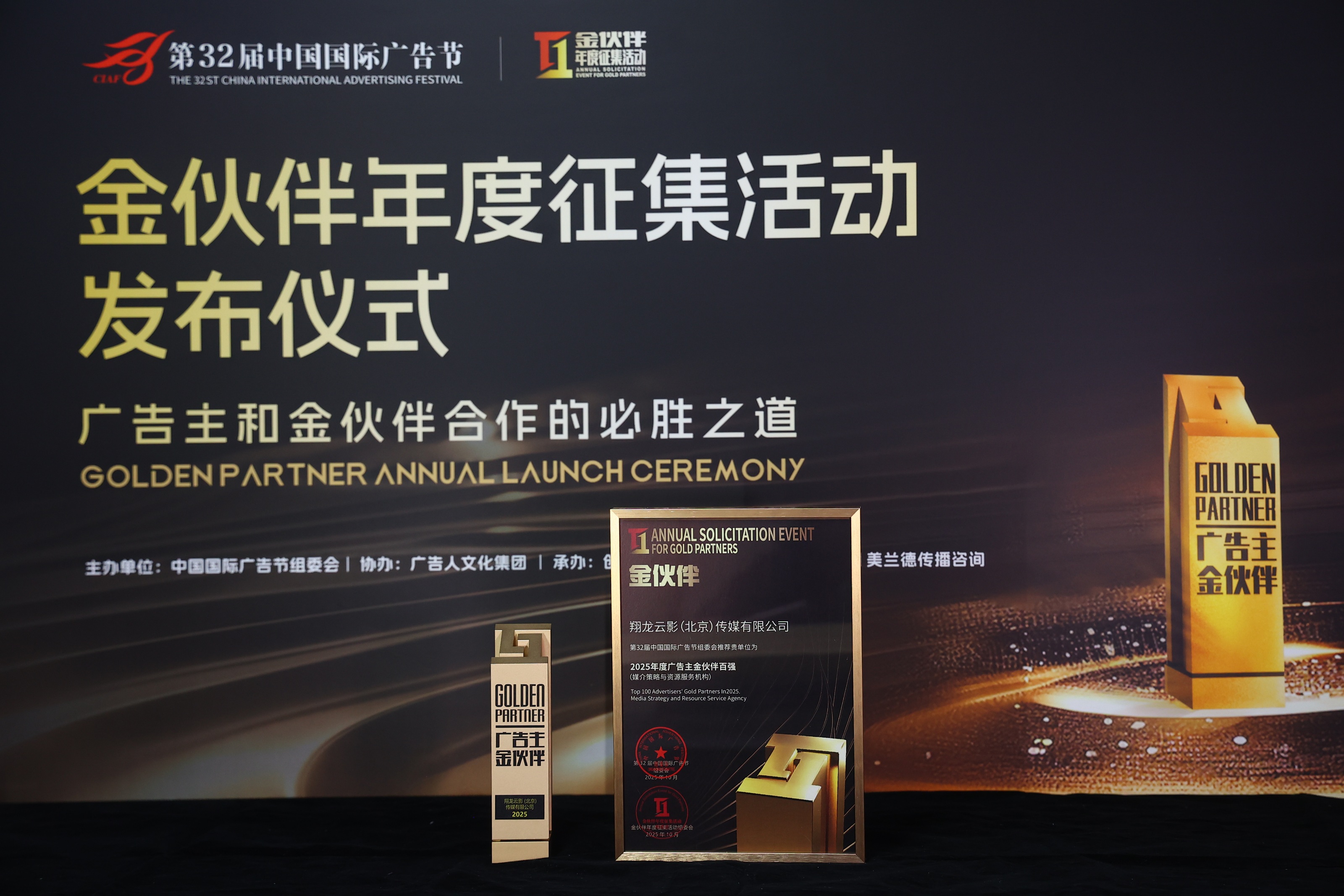 本届金伙伴评选延续“策略能力、IP资源、资源整合、案例成果、社会责任”五大核心维度,经过多轮严格评鉴,翔龙云影凭借出众的媒体资源优势,多元化的营销传播战略,专业的全链路服务团队等领域的突出实践,成功荣登2025年度广告主金伙伴矩阵。