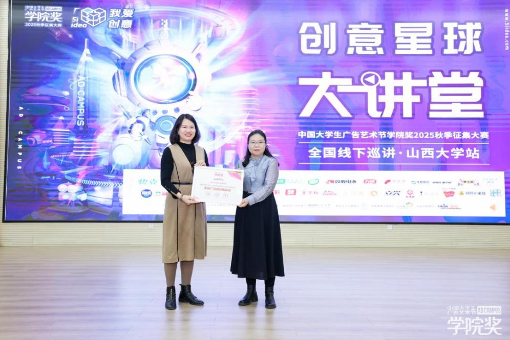 随后,创意星球董事、广告人杂志主任编辑周顺芝女士代表组委会向山西大学新闻与传播学院颁发“学院奖2025秋季征集大赛·广告教育推动奖”,由山西大学新闻与传播学院副院长李彩霞副教授代表学院领奖。这一荣誉,是对学院在推动产教融合、培养创新人才方面所作出贡献的充分肯定。