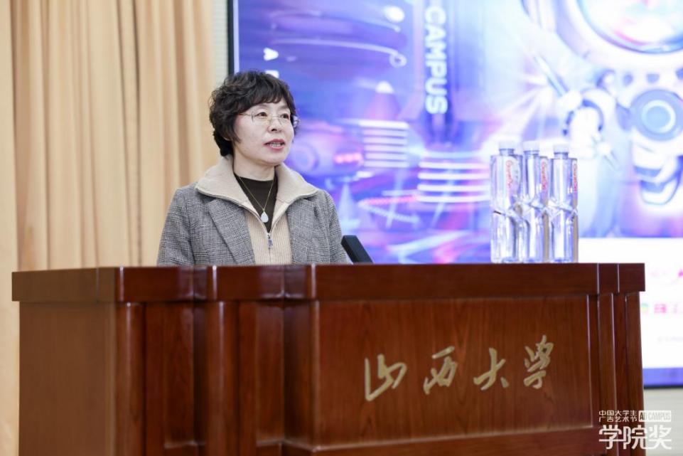 活动开始,山西大学新闻与传播学院院长庞慧敏教授在致辞中提到,学院奖不仅是一次创意聚会,更是一个让同学们“真枪实战地面对企业需求”的“战场”,是连接学界与业界、推动产学研一体化进程的重要平台。她鼓励同学们珍惜这一宝贵机会,将课堂所学在“创意沃土”上生根发芽,通过实战演练洞察品牌诉求,将书本知识沉淀、融汇为真正的专业能力,最终绽放才华、斩获荣誉。