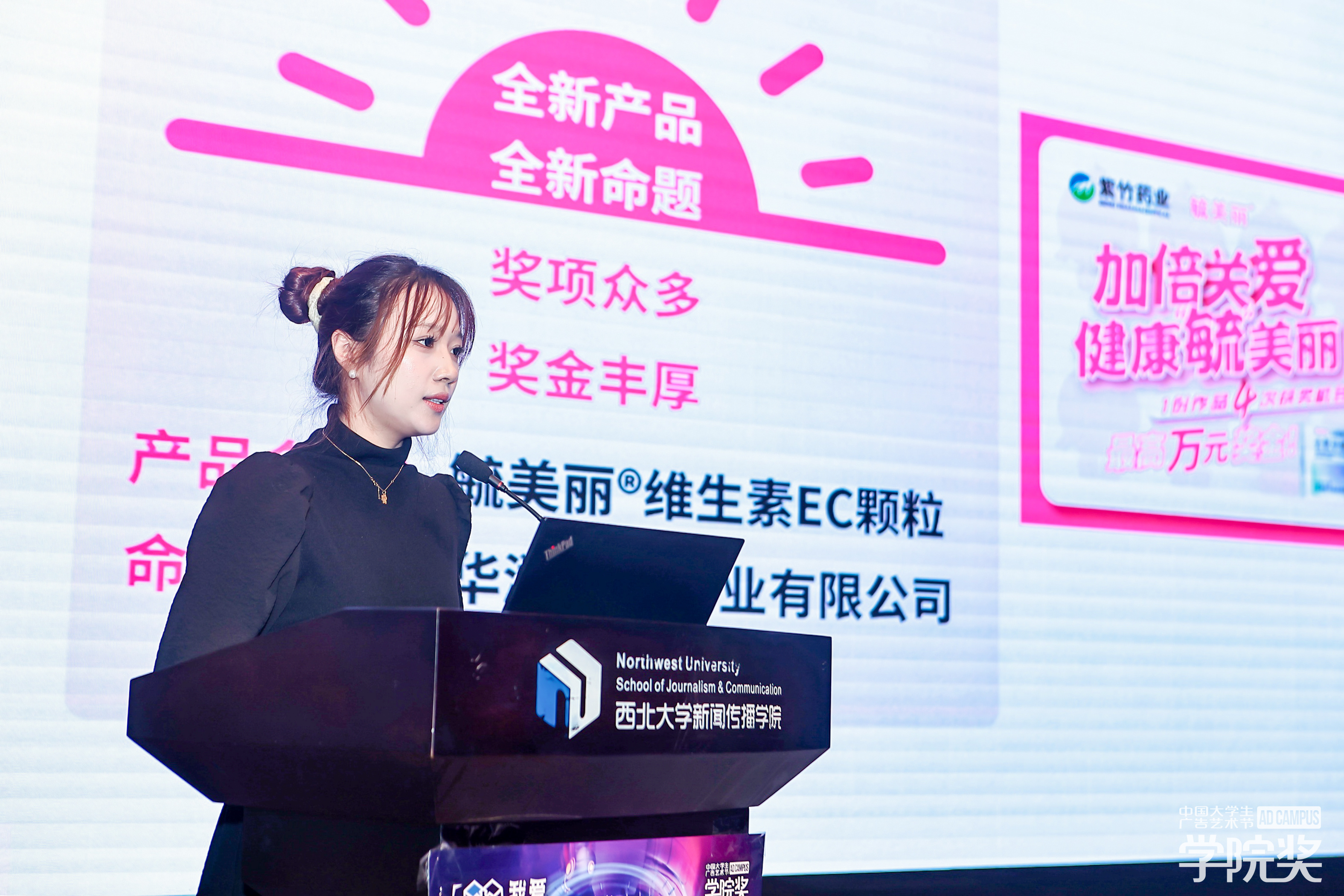 企业力量的注入让创意方向更清晰。毓美丽命题解析代表、鲁南制药品牌经理巩玉静、嘉兴可心柔纸业品牌负责人蔡云申、漳州水仙药业副总经理吴思琦等命题企业代表依次登台,结合品牌故事、产品特色与命题核心要求,进行深入浅出的解析,从创意策略到实战技巧,层层递进的分享成功点燃了学子们的创作灵感。