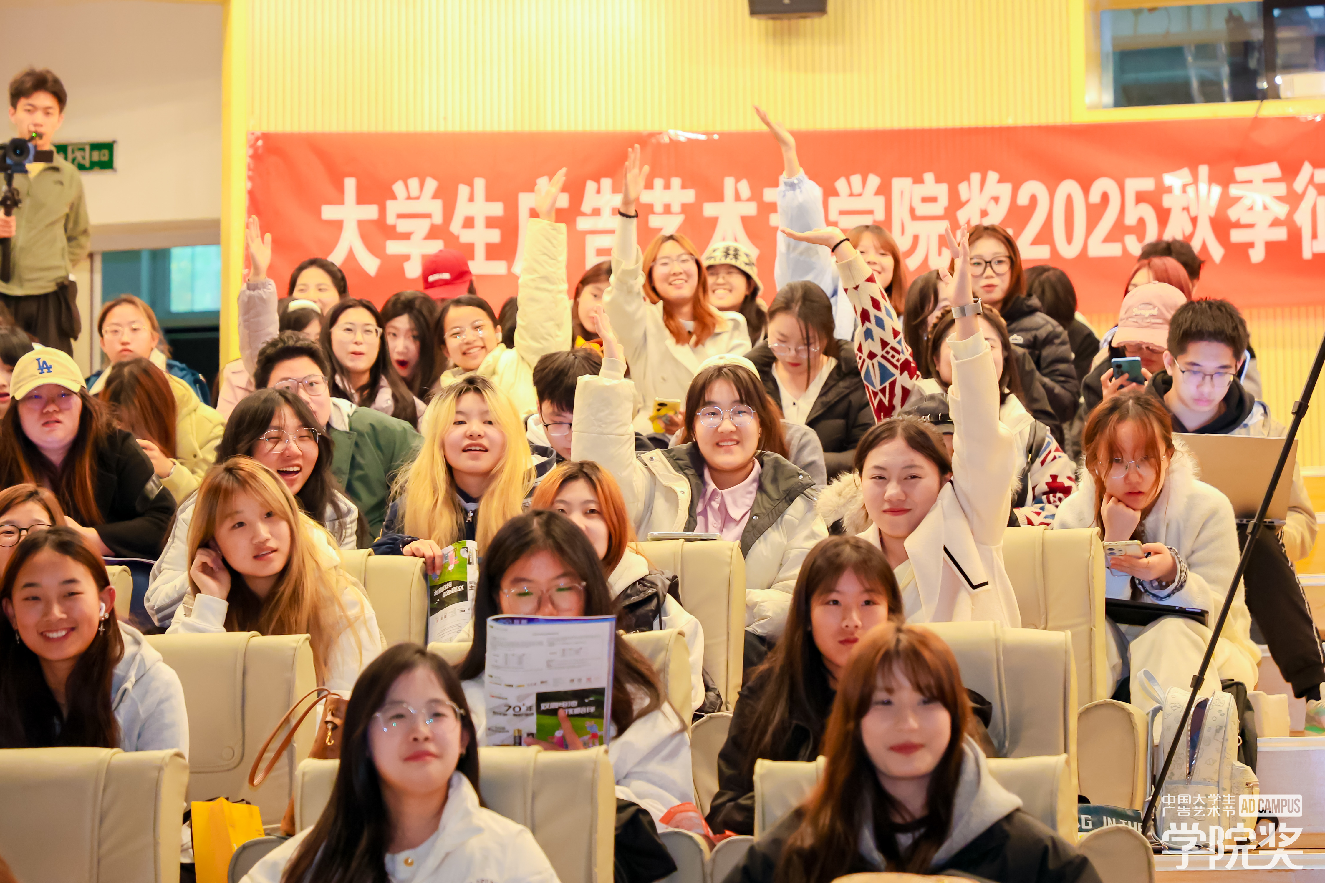 秋染京华,青春与创意澎湃涌动;校企聚力,产教融合共筑新未来。2025年11月5日,大学生广告艺术节学院奖2025秋季巡讲活动在中国传媒大学隆重举行。来自中国传媒大学的师生们齐聚一堂,共同拉开了这场创意之旅的序幕。现场座无虚席、气氛热烈。这不仅是青年一代创新热情的有力证明,更是学子们不甘于纸上谈兵、积极寻求实践赋能,以开拓未来成才新路径的生动写照。
