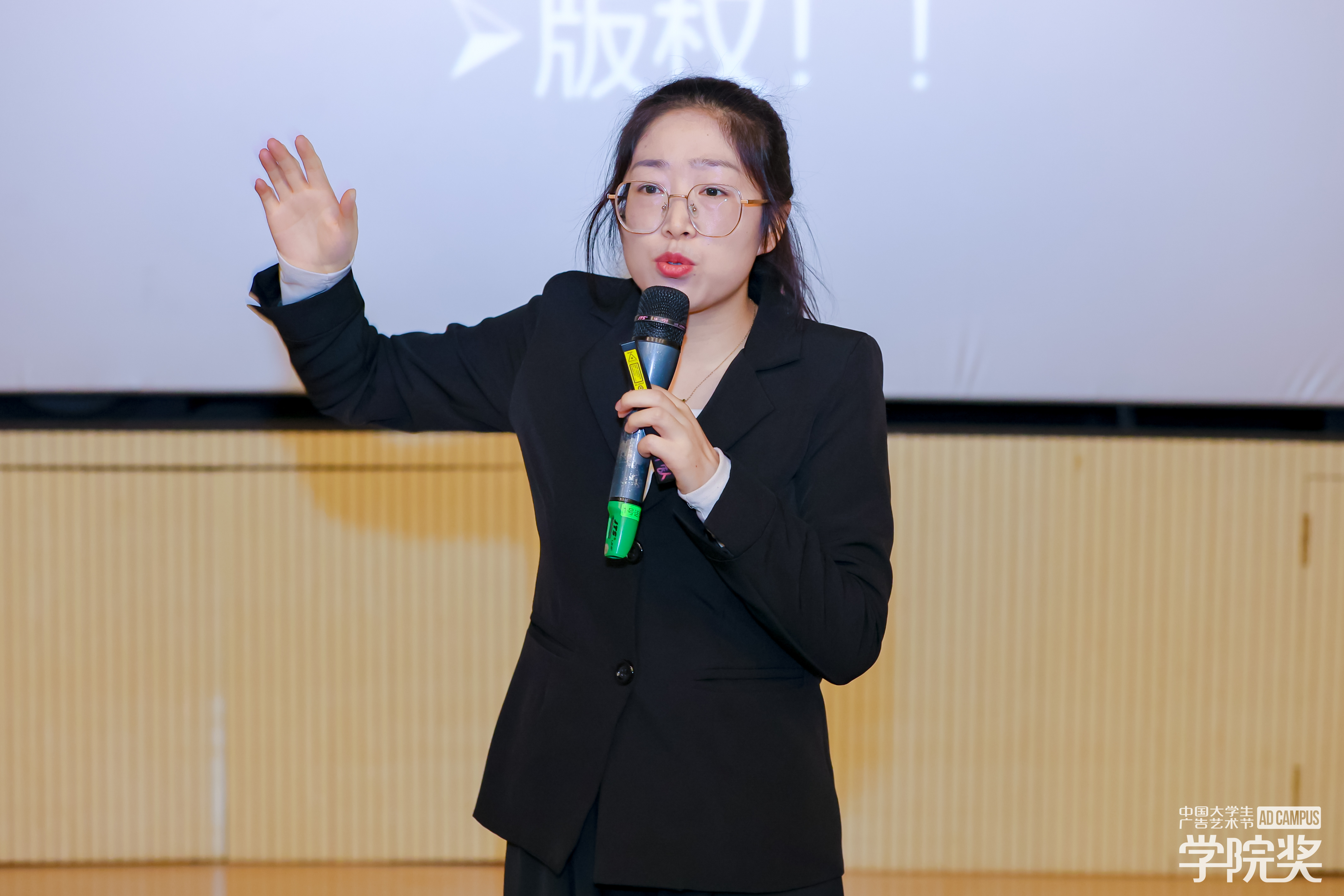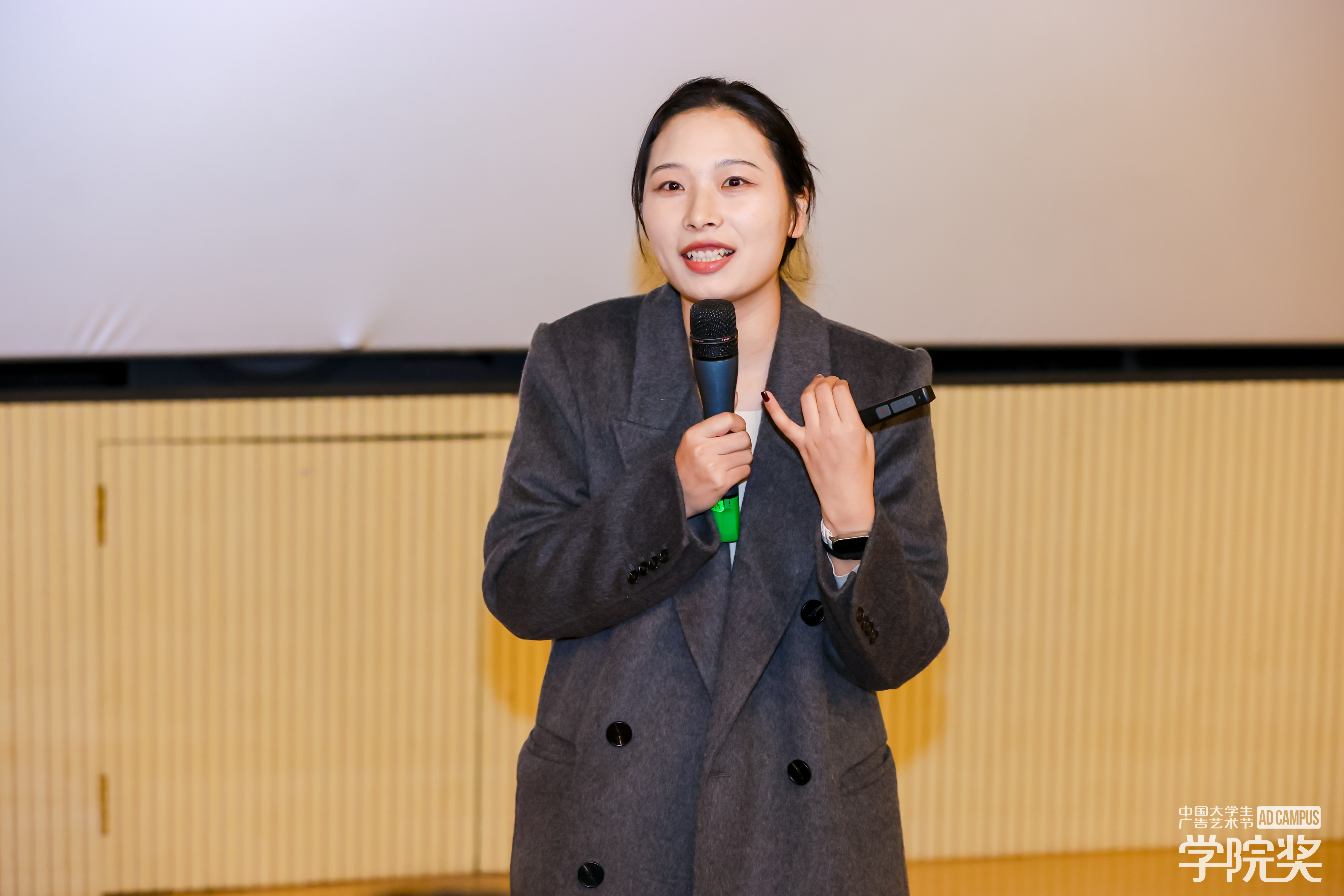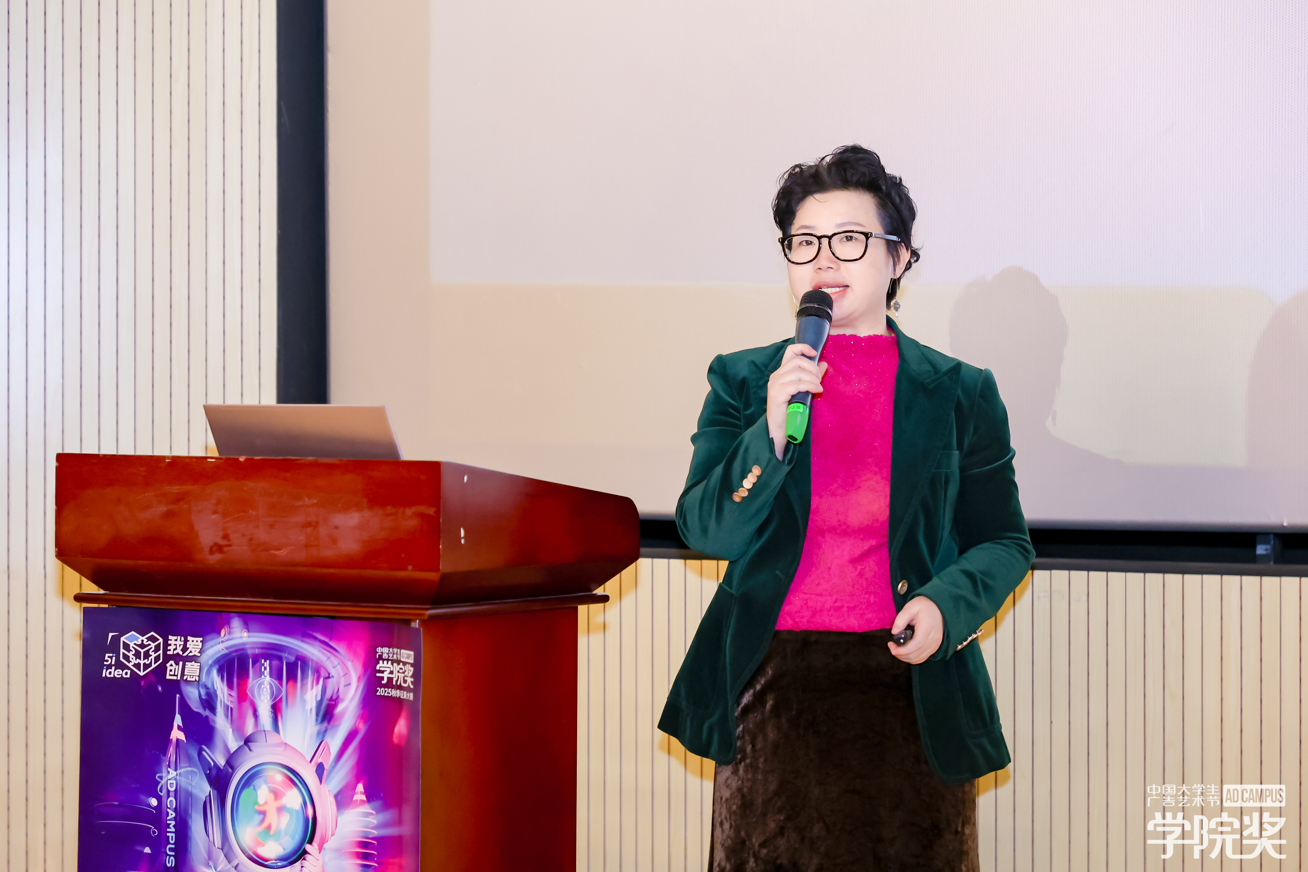 为帮助学生精准把握本届赛事动态与命题精髓,开拓创意视野;广告人文化集团高级市场总监、《广告人》杂志主任编辑周顺芝女士代表组委会,对本届学院奖的赛事规则与参赛流程进行了系统梳理。她深度解读了2025年秋季征集大赛的赛制亮点与核心命题方向,为现场同学带来了一场内容扎实、指导性强的参赛指南分享。