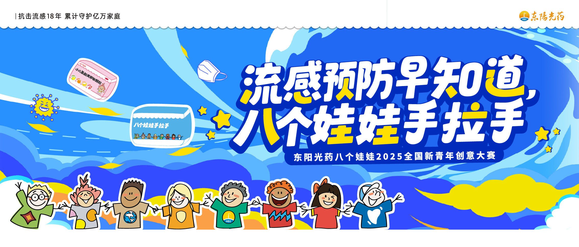 坚实的品牌力量与专业积淀,为创意的迸发提供了深厚的土壤。东阳光药八个娃娃此次以“流感预防早知道,八个娃娃手拉手”为主题发起创意征集,诚邀百万大学生以年轻化的视角和趣味性的创意,为八个娃娃品牌增添新的活力与内涵,让更多年轻人认识了解八个娃娃,共同守护儿童健康。