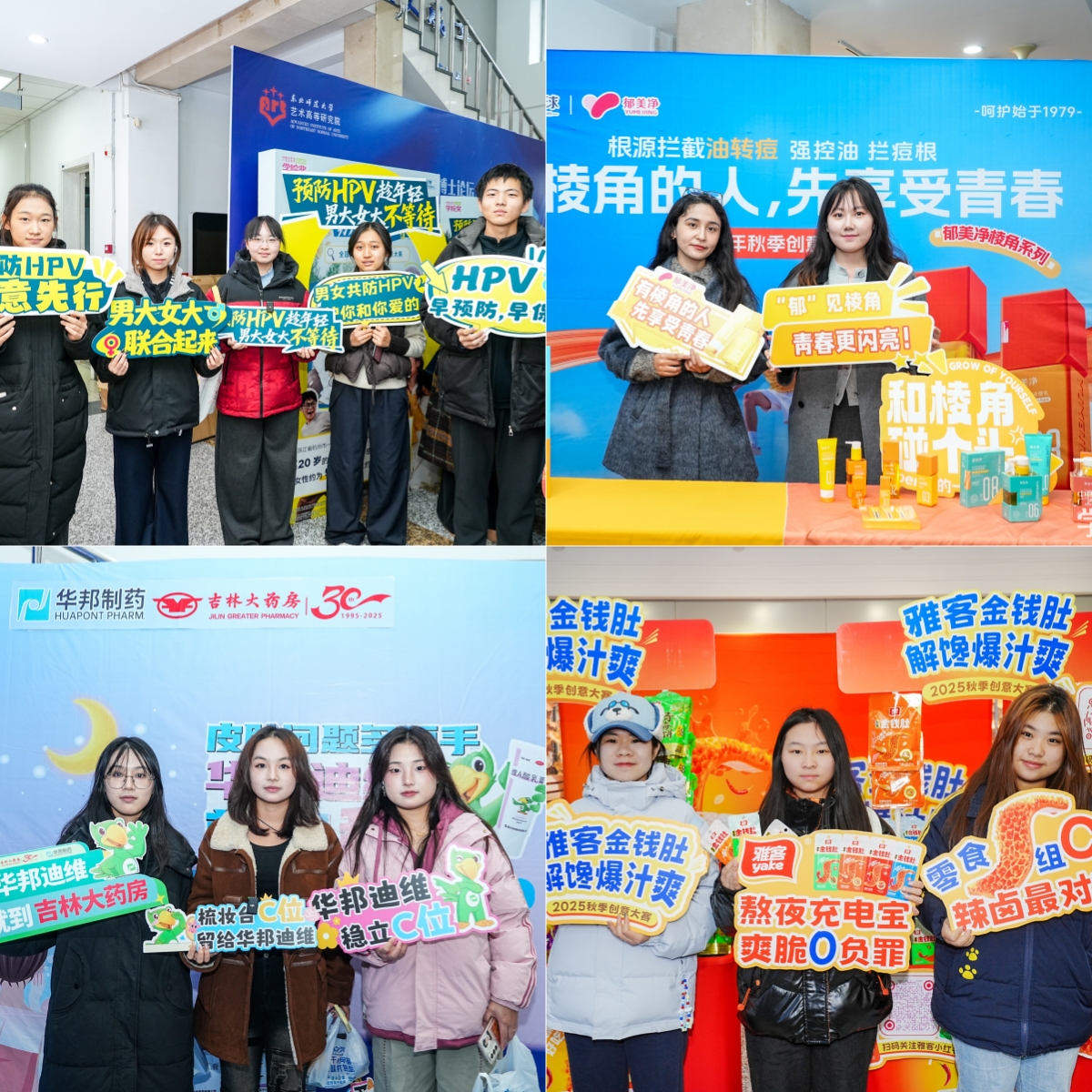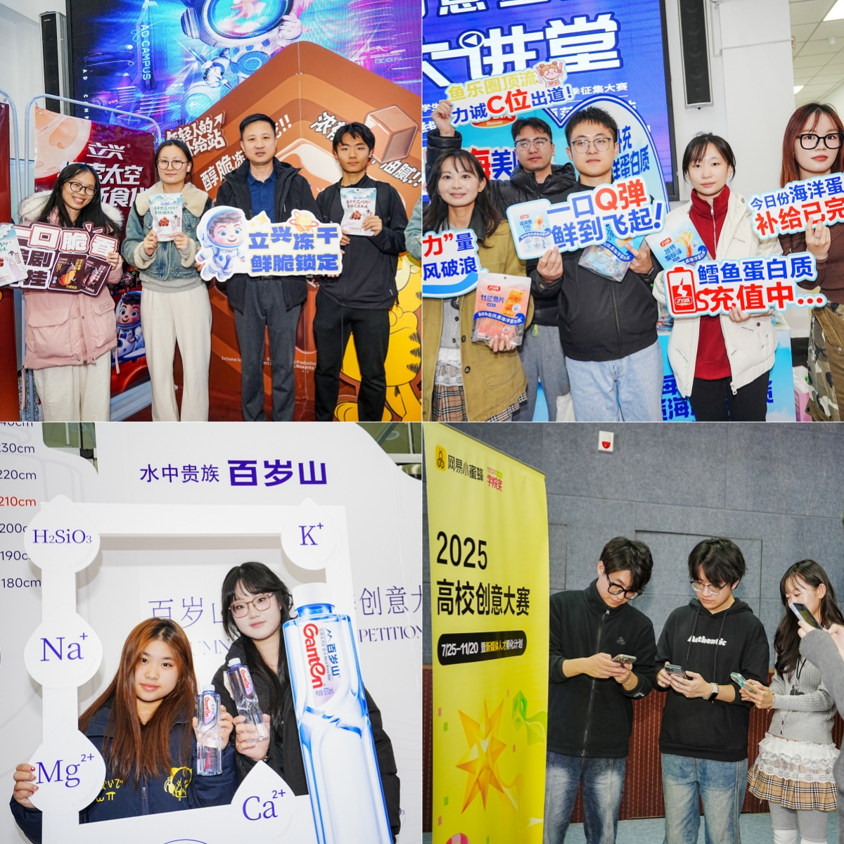 活动现场彻底点燃校园激情,会场内座无虚席,人数爆满到临时加座,放眼望去满是青春身影。提问互动环节热度拉满,全场笑声不断,惊喜礼品派送持续点燃现场氛围。场外展示区更是成为“吸睛宝地”,各个品牌展位精心布置,化身“校园打卡热点”。同学们举起手机定格精彩瞬间,积极参与品牌小游戏,深入了解品牌故事。整个校园都被欢乐包裹,青春的朝气溢出屏幕!