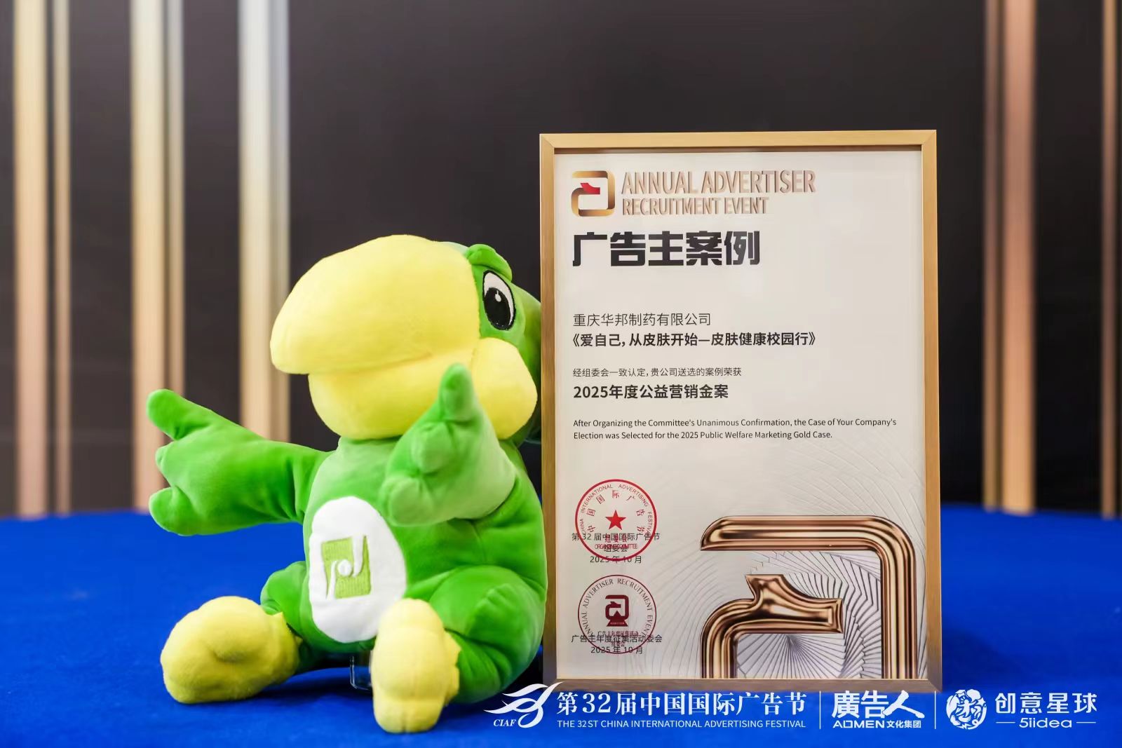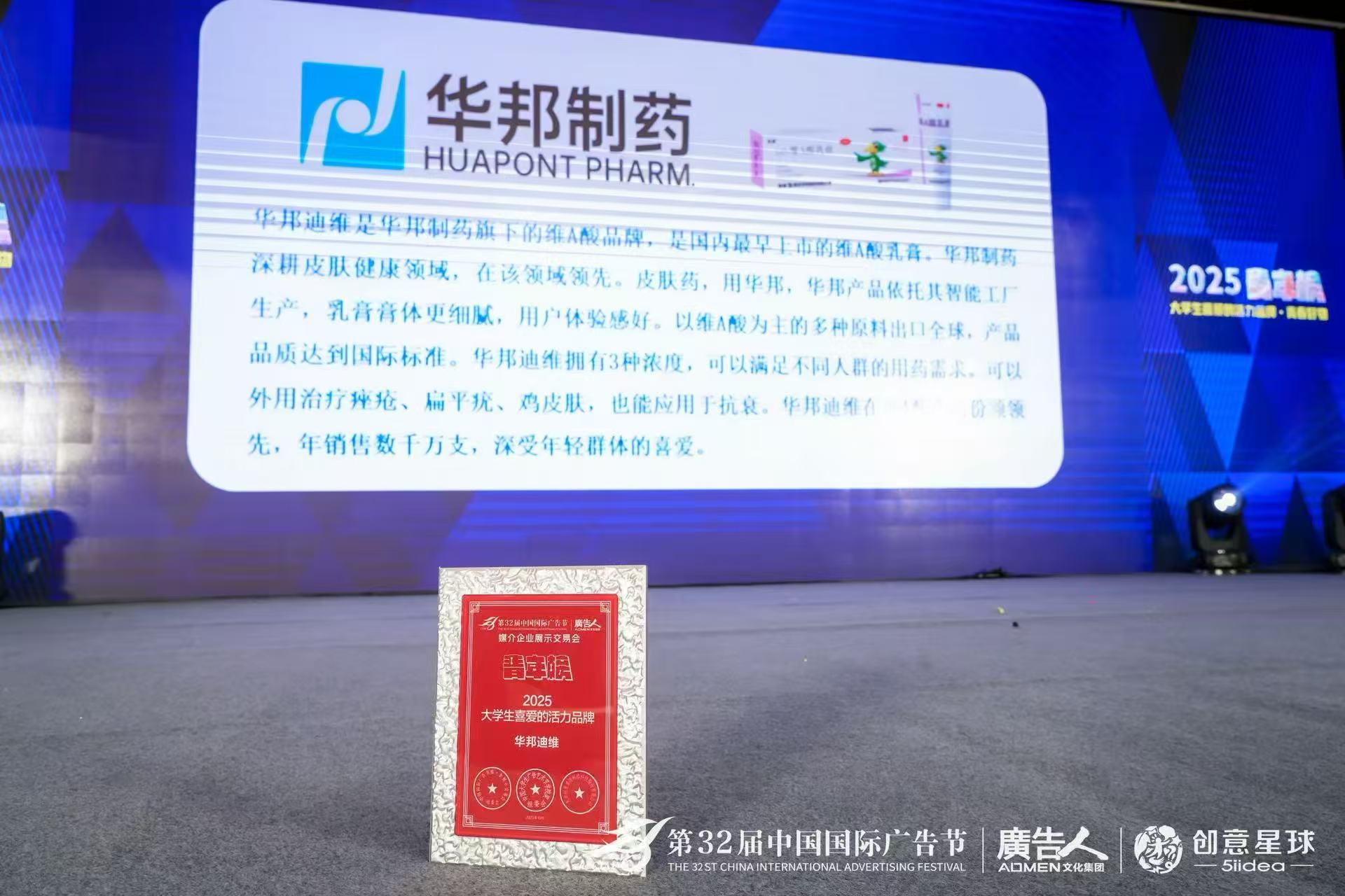 金秋十月,广告行业年度盛典——第32届中国国际广告节于10月24日-26日在北京海淀中关村国际创新中心隆重召开,本届广告节首次与第34届亚洲广告大会实现“双会同期同地联动”,以“智启广告新篇:中国主场,亚洲同频”为主题,汇聚全球广告人、品牌方与行业专家,共探营销创新与品牌增长新路径。作为皮肤健康领域的领先企业,华邦制药应邀出席此次行业盛会,凭借在年轻市场的深度布局与创新营销实践,一举斩获两大重磅荣誉,成为盛典焦点之一。