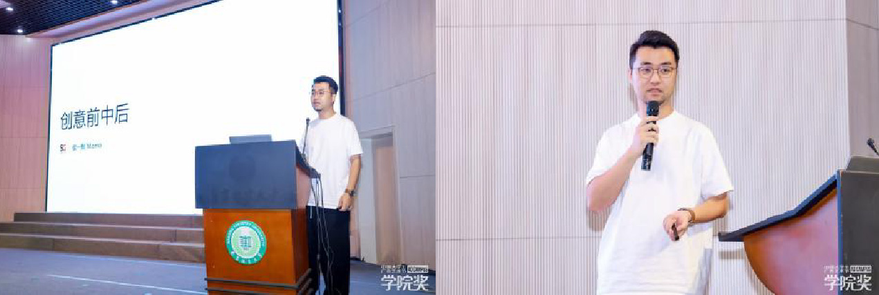 在“大师谈创意”环节,胜加上海创意合伙人侯一默先生以轻松幽默而又充满思辨的语言,为同学们带来了一场关于创意本质与执行方法的精彩演讲。他结合自身多年在广告行业的实战经验,通过多个具有社会影响力的品牌案例,层层剖析优秀创意背后的策略逻辑与情感共鸣点,强调“创意并非天马行空,而是基于对人性和社会的深刻洞察”。侯一默先生的分享不仅拓宽了学生的专业视野,更启发他们重新思考创意的价值与边界,在学子们中间引起了强烈反响。