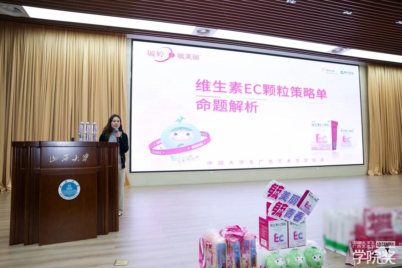 为启发同学们的思路,品牌代表结合往年的获奖作品,向大家分享不同赛道的创作技巧,鼓励大家用年轻化语言诠释品牌关怀。活动现场,品牌方通过趣味问答与同学们进行互动,同学们积极举手回答问题,品牌方也送上定制礼品,现场气氛推向新的高潮。
