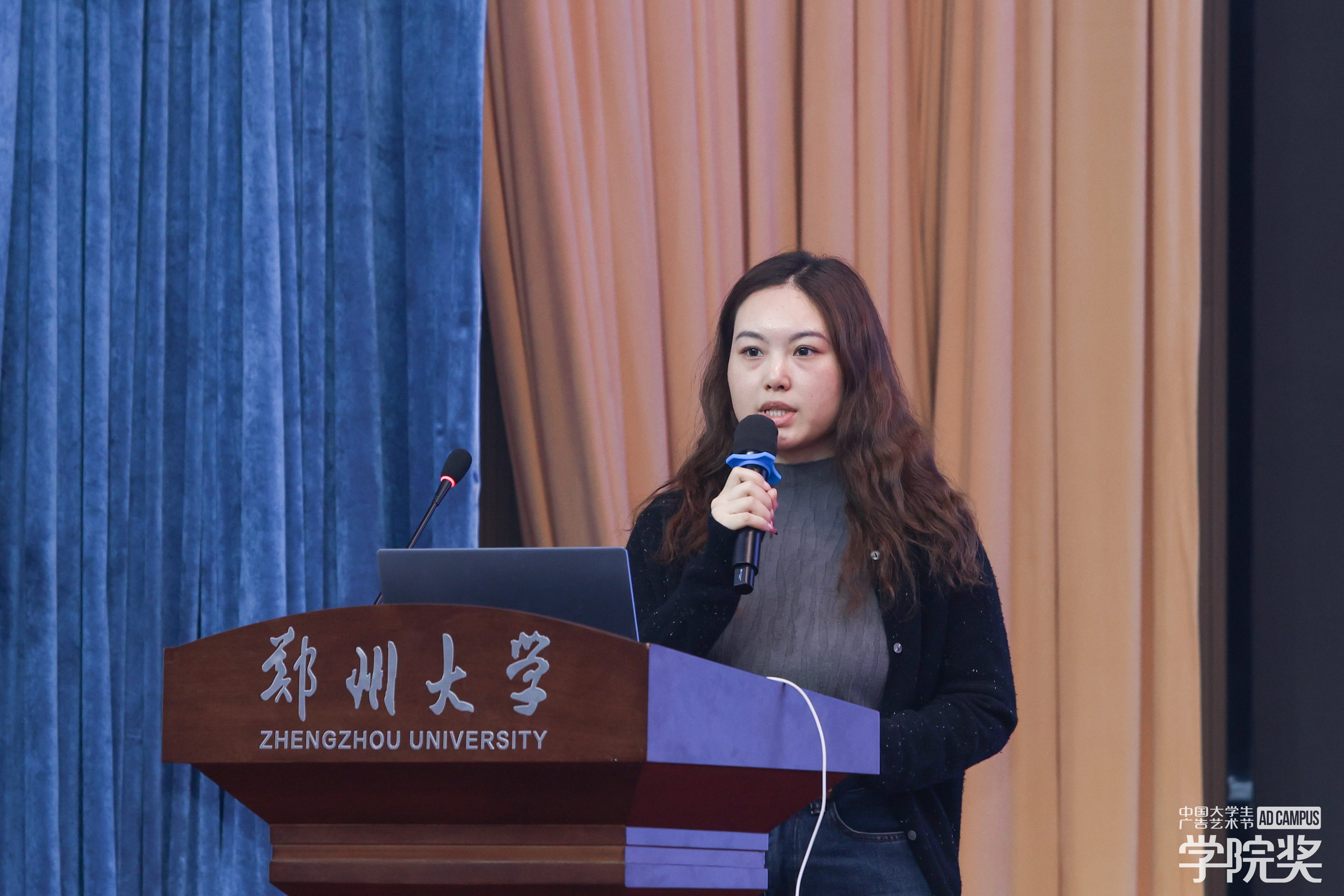 活动伊始,郑州大学新闻与传播副院长韩文静老师作为东道主代表致欢迎辞。她向与会嘉宾介绍了学院作为河南省新闻传播教育领军者的深厚底蕴与学科实力,并肯定了学院奖在促进广告教育实战化转型中的重要作用。她指出学院奖作为连接业界和学界的桥梁,不仅是课堂教学的延申,更是同学们直面行业前沿,锤炼实战能力,绽放创新才华的练兵场与试金石,鼓励同学们积极投身创作,切实提升专业素养与创新能力。