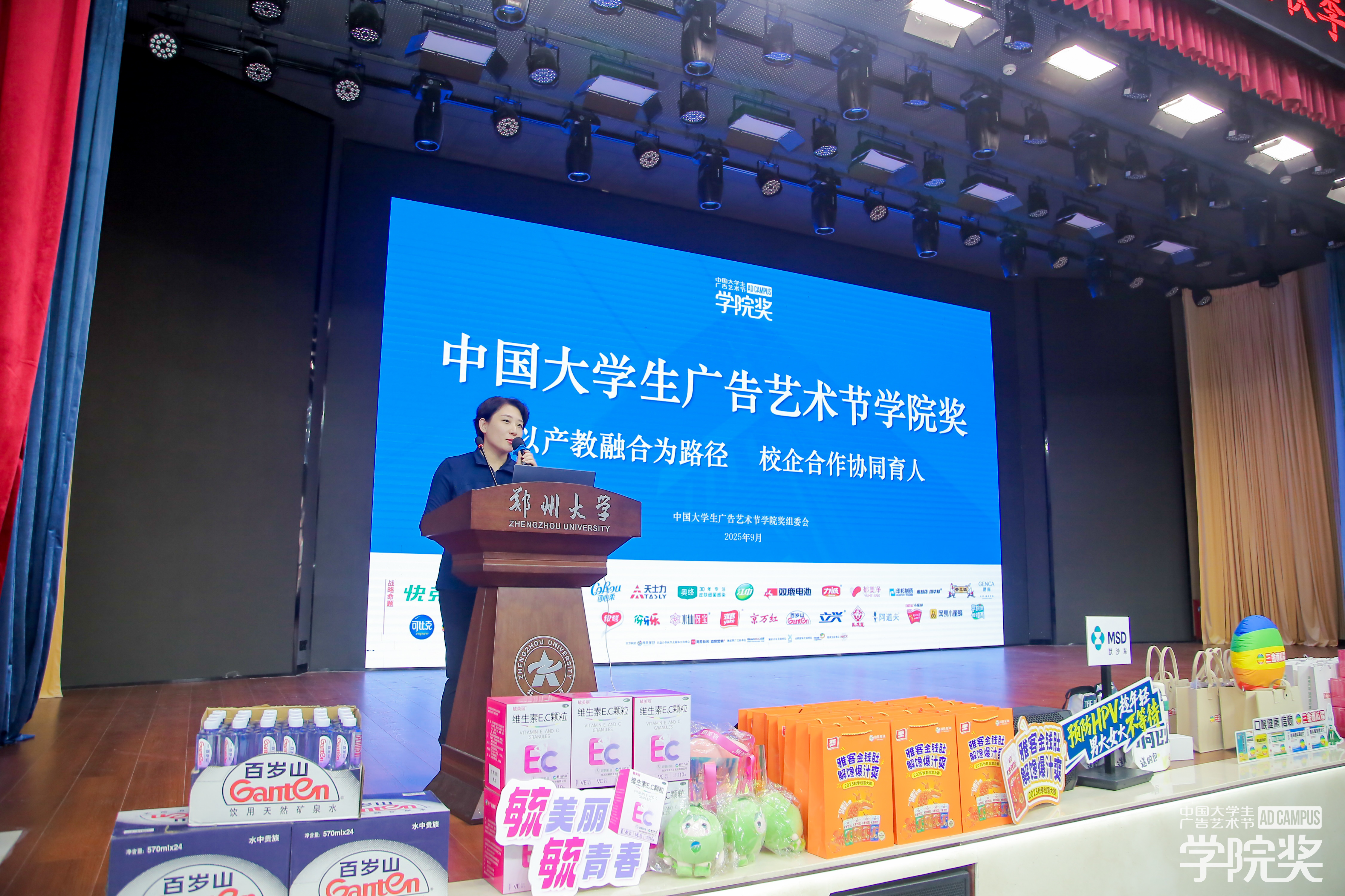 随后,广告人文化集团市场总监李敏女士代表学院奖组委会,向郑州大学新闻与传播学院颁发“中国大学生广告艺术节学院奖2025秋季征集大赛·广告教育推动奖”证书,由郑州大学新闻与传播学院广告系党支部书记楚明钦代表学院领奖。郑州大学新闻与传播学院是河南省新闻传播教育重镇,致力于培养具有国际视野和创新能力的复合型传媒人才,学院广告系在学术研究、教学实践与行业合作方面成果显著,为行业输送了大批优秀人才。此次获奖更是对学院实践育人理念的又一次认可。