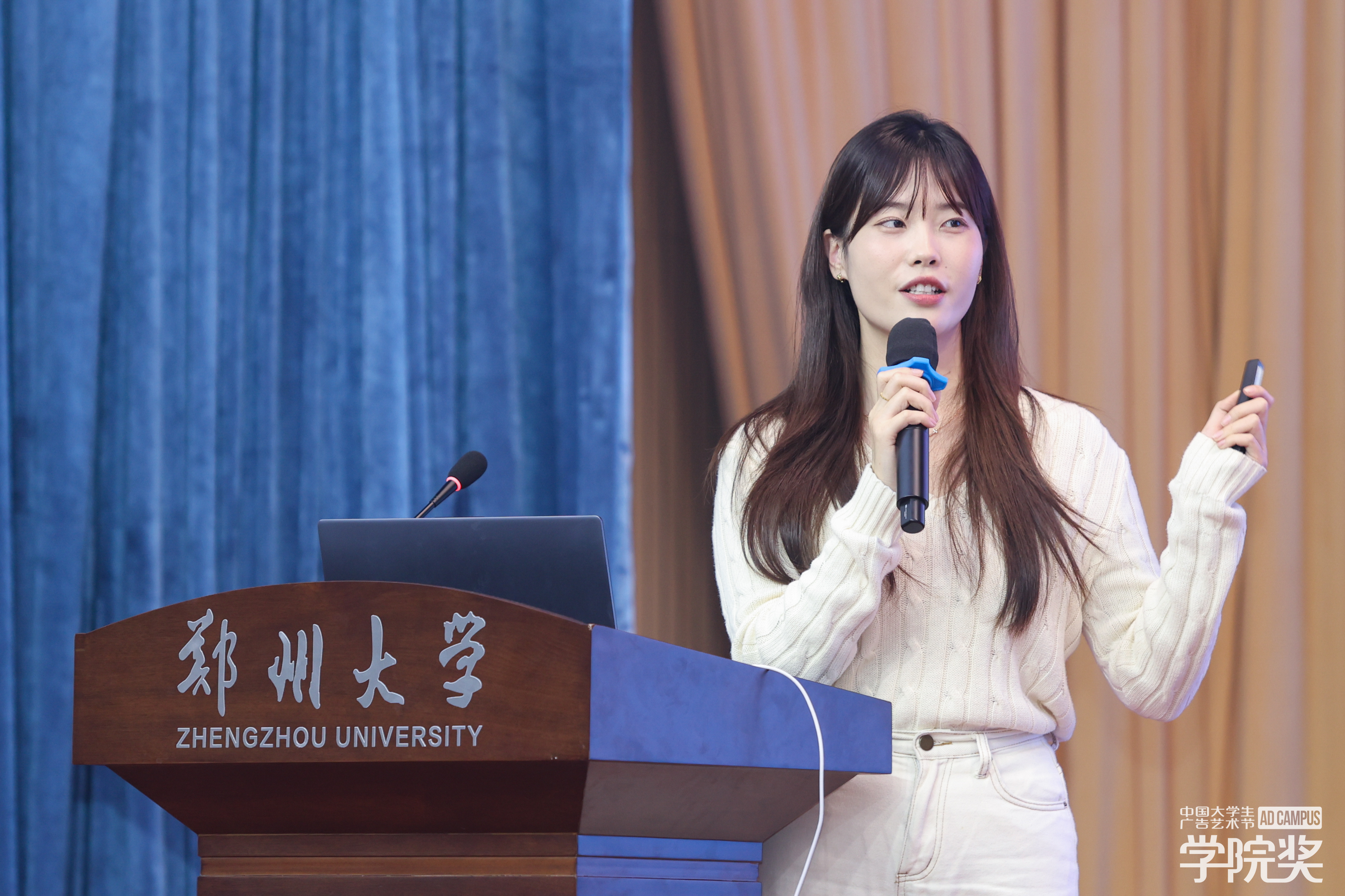 为助力学子精准把握赛事脉搏、洞察命题精髓,广告人文化集团高校市场总监袁艺菡女士代表组委会对本届学院奖赛程规划与参赛机制进行了系统性阐释。她聚焦2025年秋季征集大赛的赛制创新与核心命题方向,通过详实解读为在场学子提供了一份目标清晰、路径明确的创作指南。