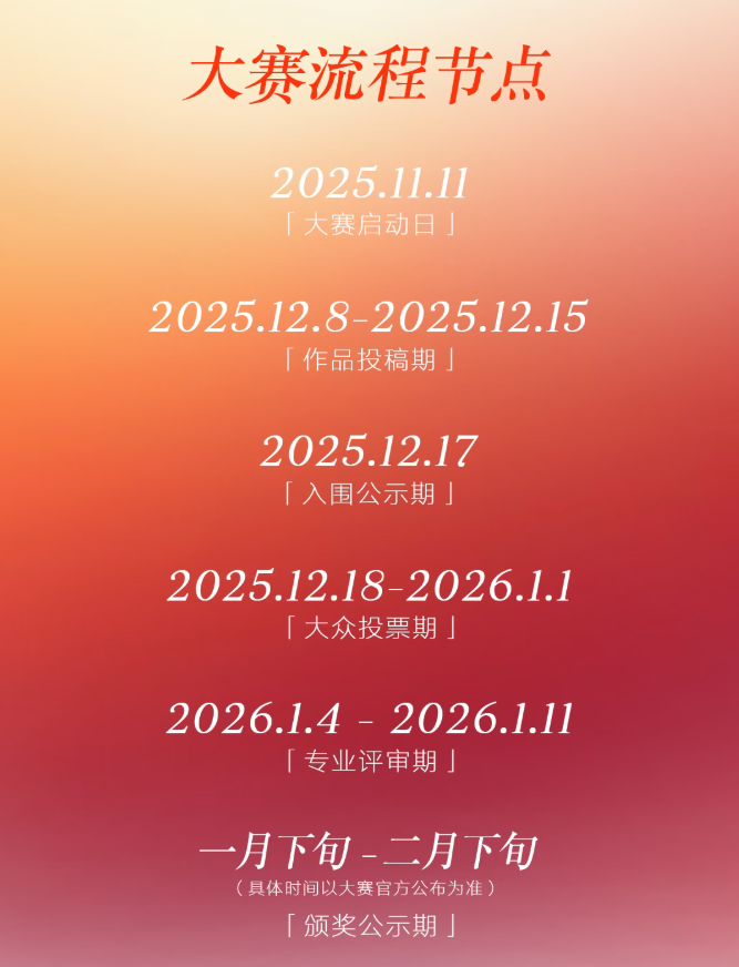 大赛截稿日期:2025年12月15日24:00,逾期提交的作品将不予受理。