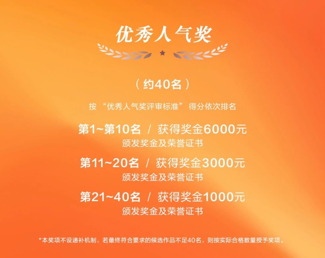 此次大赛还打造“专业设计+传播魅力” 硬核双赛道——10个优秀作品奖覆盖 “创艺”“传承” 等多元维度,考验真才实学;40个优秀人气奖以阶梯式奖金点燃传播热情,让设计破圈出彩。无论是深耕专业的 “设计学霸”,还是擅长造势的“传播达人”,都能在这里找到高光舞台!这份诚意满满的激励,不仅全方位点燃每一位设计者的创意野心,更让每一份匠心付出都能收获对等荣光,在亚运礼服的创作中实现文化传承与设计创新的双向奔赴!