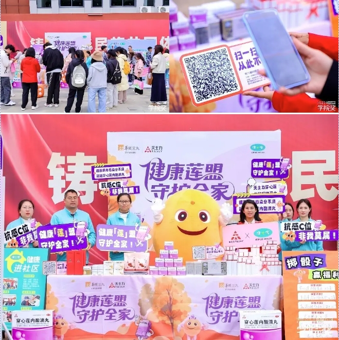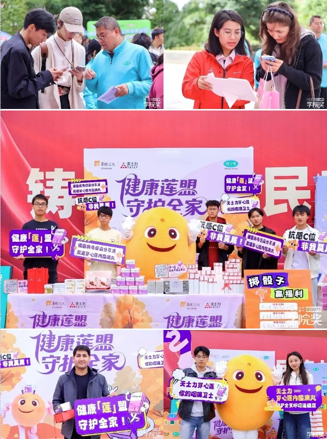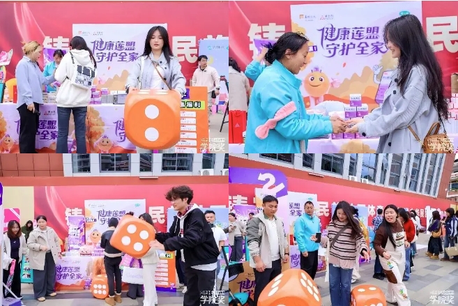活动尚未正式开始,天士力联合云南健之佳打造的“健康补给站”便已成为校园焦点。融合多元设计元素的互动展区,仿佛一个充满活力的民族健康市集。展区特别设置了“健康守护骰子”互动游戏,将其与防感知识巧妙结合,同学们在投掷间既能了解健康养生智慧,又能收获健康礼品。