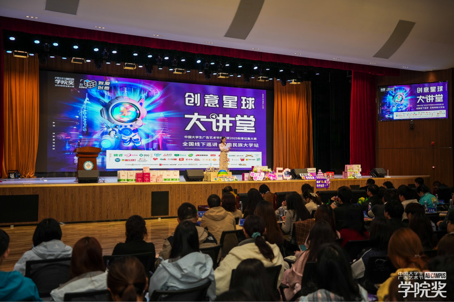 2025年11月6日下午,中国大学生广告艺术节学院奖2025秋季创意大讲堂在云南民族大学呈贡校区志公堂圆满举行。此次巡讲活动旨在促进教育资源与产业需求的精准对接,进一步提升在校学生面向实践的专业能力,以命题解析、创意分享与品牌互动为纽带,汇聚来自云南多所高校的四百余名师生,共筑高效的校企对接与行业对话平台。
