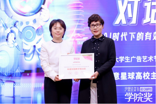随后,广告人文化集团副总裁、中国大学生广告艺术节学院奖秘书长袁健代表主办方为深圳大学艺术学部颁发“年度实践教学推动奖”,以表彰其在产教融合与创意实践方面的深耕与贡献。