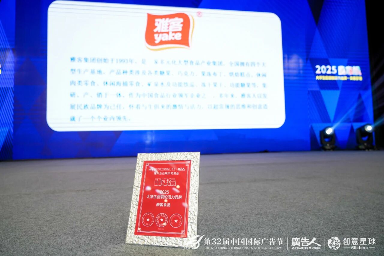 作为中国食品行业的领军企业之一,雅客惊艳亮相第32届中国国际广告节,不仅凭借优秀案例斩获行业荣誉,更以一系列品牌焕新动作再度赢得年轻消费群体的高度认可,多维展现其卓越的品牌力量与年轻化战略成果。