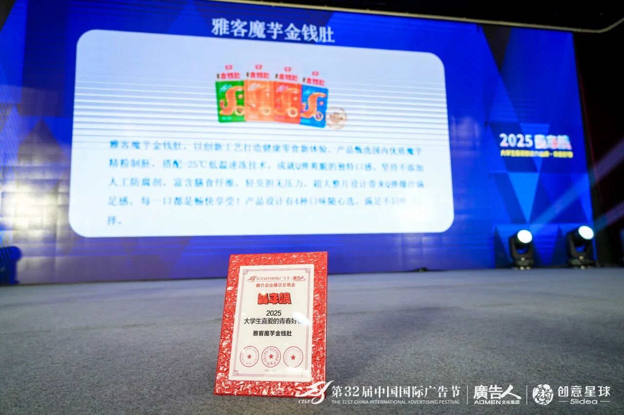 雅客在品牌年轻化道路上的持续深耕,再次赢得年轻一代的热情回响。基于对年轻消费趋势的深刻洞察与精准触达,雅客食品荣获“大学生喜爱的活力品牌”荣誉称号。同时,其推出的创新零食——雅客魔芋金钱肚,凭借其独特口感与创新理念,成功入选“大学生喜爱的青春好物”。