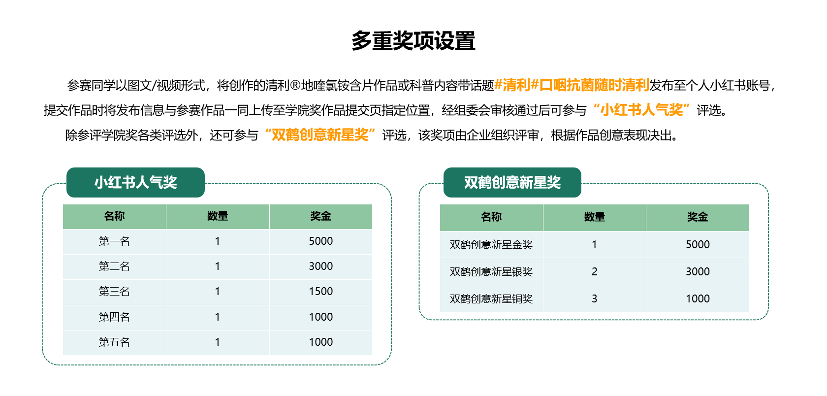 为助力优质青年创意破圈传播,大赛特别设置小红书人气奖与双鹤创意新星奖,一份作品可角逐三重奖项,为年轻视野下的口咽健康创意作品注入鲜活传播力。