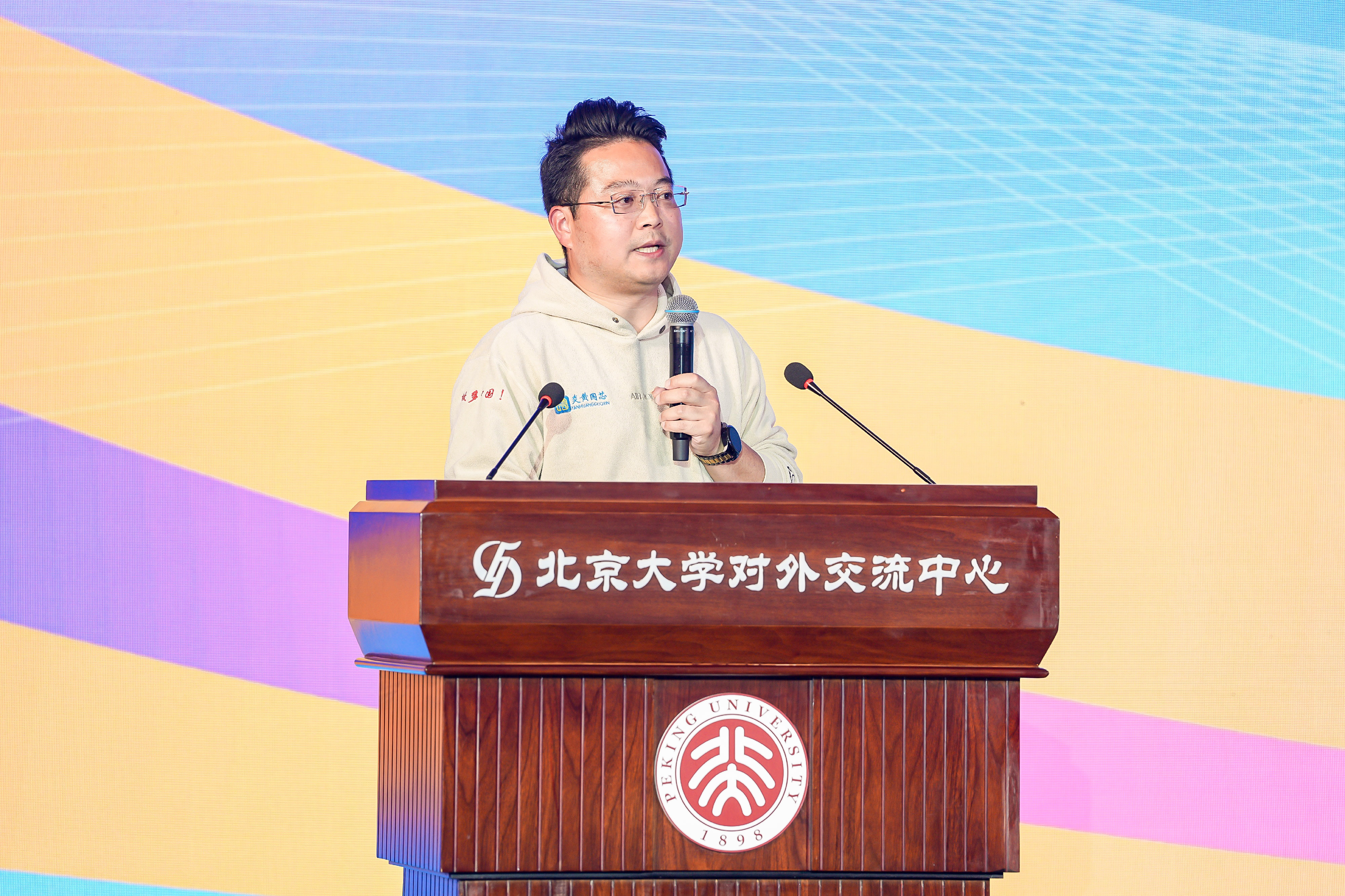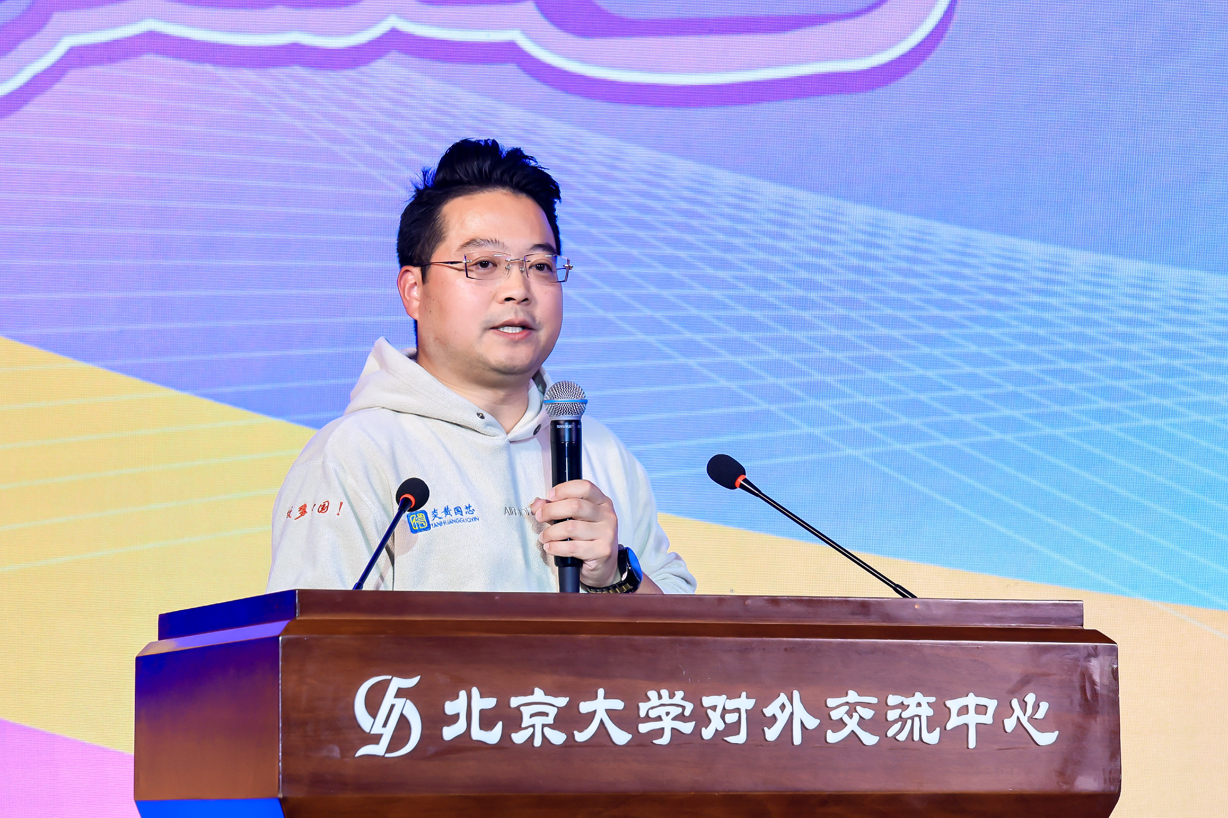 活动现场特别设置了“校友谈奋斗”环节,特邀北京大学校友郭虎登台分享。他以《新时代·新青年·新创业——中国模拟芯片的机遇与挑战》为题,讲述了自己从一名普通大学生到青年榜样背后的奋斗历程。