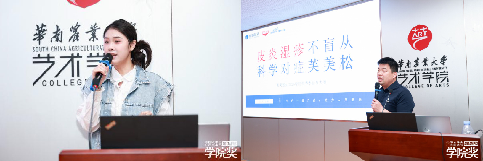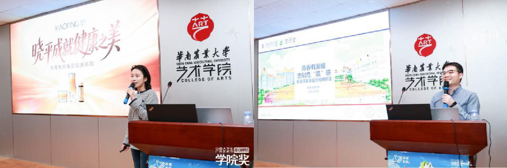 此次巡讲活动得到了多家命题企业的鼎力支持,华润紫竹药业品牌经理廖雨宁女士、浙江仙琚制药皮肤科产品经理王德兴先生、鲁南制药集团产品经理王晓萌女士及香港澳美制药零售市场部产品经理陈攀先生等企业代表现场参与。他们为同学们带来了深入浅出的命题解析、生动鲜活的创意分享,以及宝贵的实践创作经验和优秀案例。这些精彩纷呈的内容不仅拓宽了学生的专业视野,更激发了他们的创作灵感与热情。