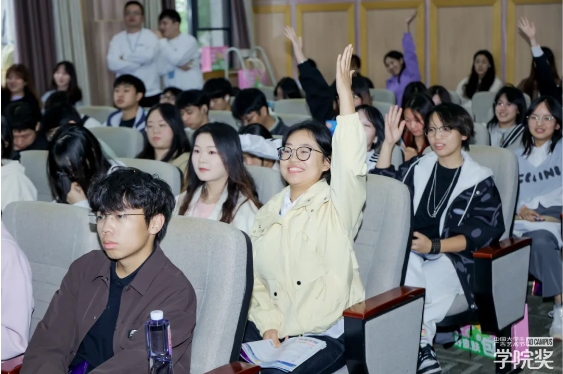 互动问答环节,学子们踊跃举手抢答,品牌代表也以专业视角逐一回应,展开了一场关于健康管理与科学减重的深度对话。也为现场积极互动的同学送上定制健康礼包,现场热情持续高涨,青春创意与品牌健康理念同频共振。