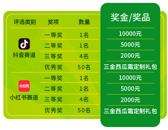 所有参与三金西瓜霜命题的作品,均可同步参与小红书人气奖和抖音人气奖评选。