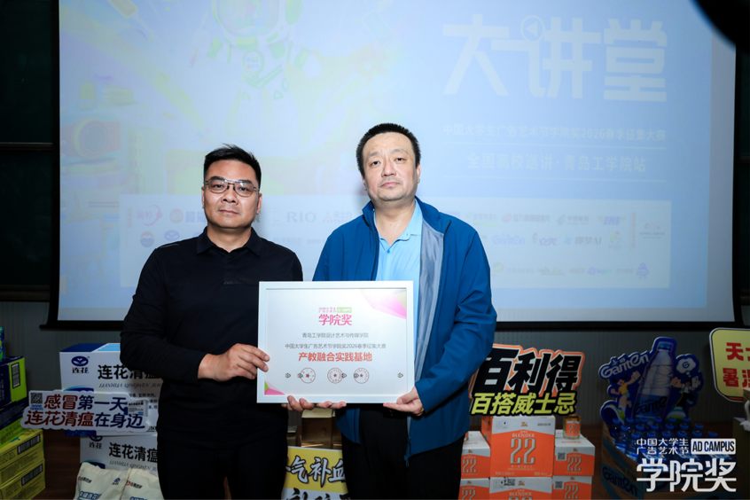 随后,高鹏铭秘书长为青岛工学院颁发中国大学生广告艺术节学院奖2026春季征集大赛•年度广告教育推动奖证书,设计艺术与传媒学院院长李杰代表学校上台领奖。这一奖项不仅是对学校长期深耕创意教育、推动广告教学与行业实践深度融合的高度认可,更夯实了院校与学院奖携手赋能青年创意成长的合作基础,为未来深化合作奠定了坚实根基。