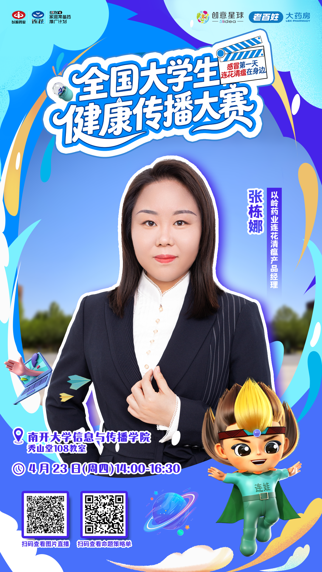 本次大赛特别邀请老百姓大药房作为公益支持伙伴,与连花清瘟并肩同行。从校园创意到终端场景,从青年表达到大众传播,多方聚力共同推动健康理念落地生根。